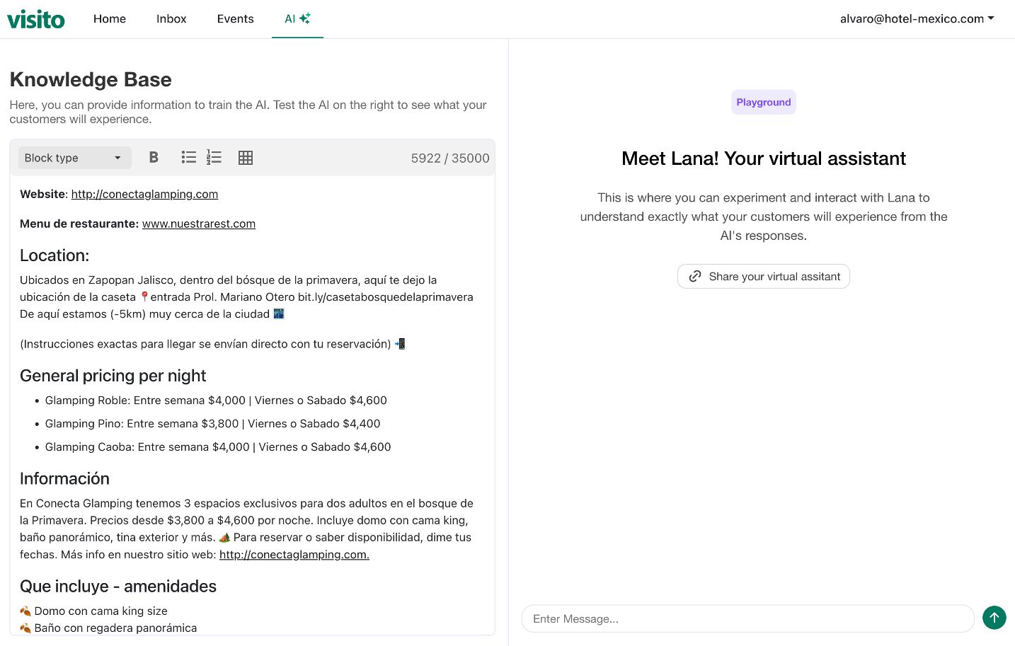 Visito AI يعمل بشكل جيد! لقد استخدمنا هذه الميزة في عقاراتنا الثلاثة، وحققنا نجاحًا كبيرًا.