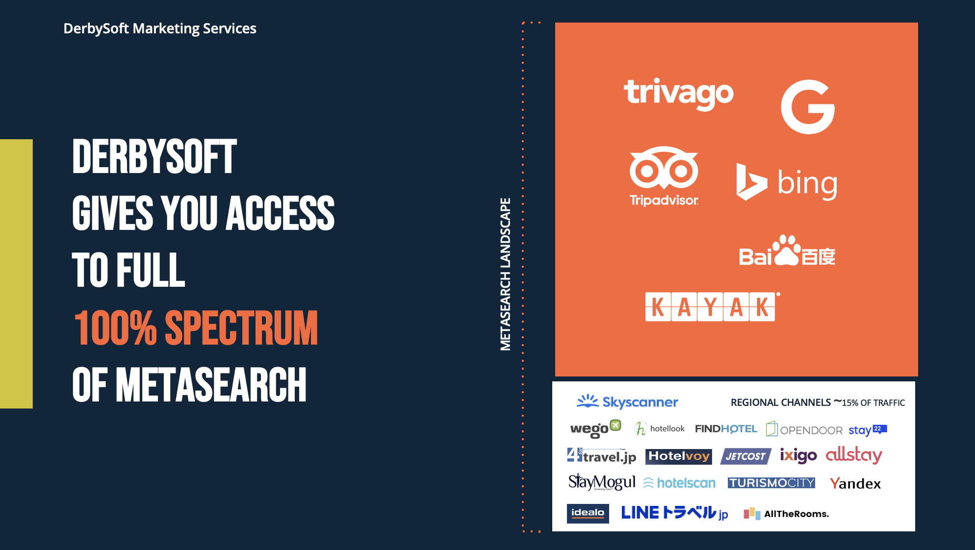 طور DerbySoft اتصال بحث ميتا متخصص بالإضافة إلى مجموعة من أدوات إدارة التقارير والبيانات الوصفية. فريق محترف على دراية مع تنفيذ ودعم ممتازين.