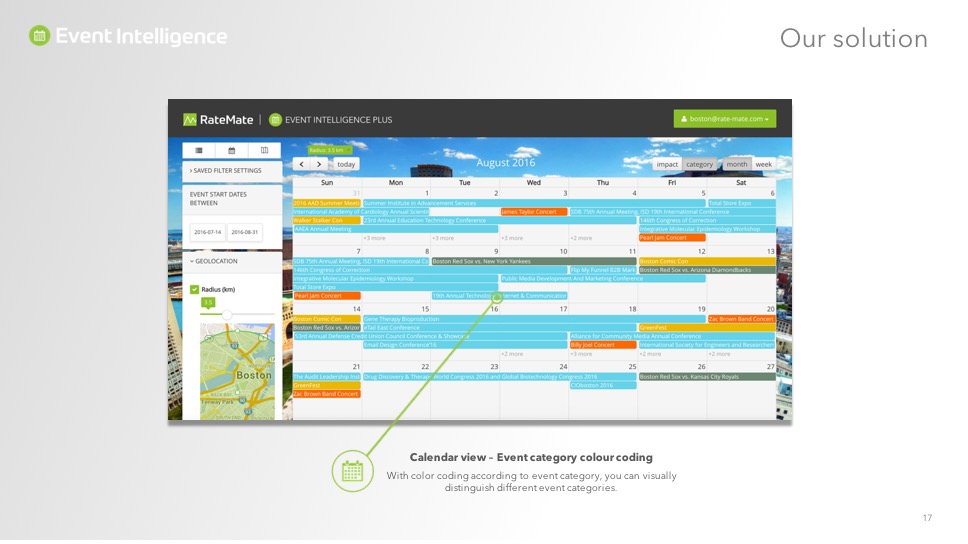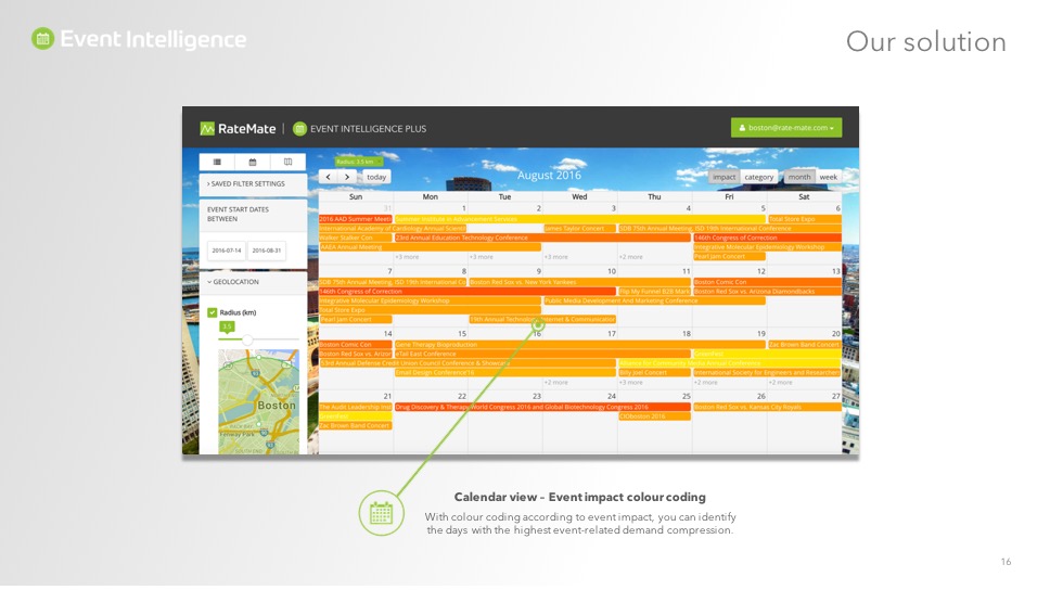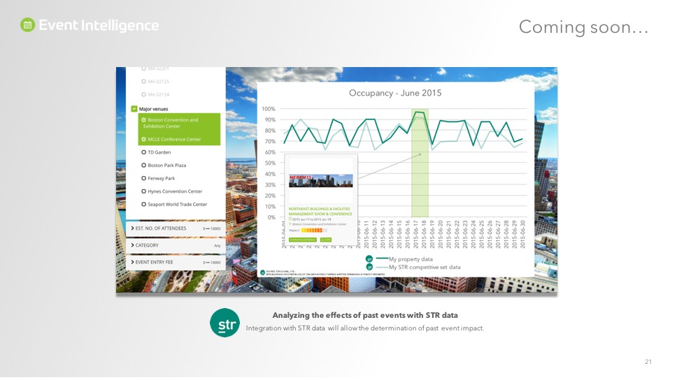 "توفير بيانات الأحداث المستقبلية لصناعة السفر. مساعدة الفنادق على زيادة الإيرادات إلى أقصى حد في أيام الضغط وتوقع عملاء متوقعين جدد. تحديد مواعيد الضغط والاستعداد لها لزيادة الإيرادات إلى أقصى حد. استخدم بيانات الأحداث الخاصة بنا للتخطيط السنوي والربع السنوي. ضرب وتجاوز أهداف RGI الخاصة بك. توقع منظمي الحدث الذين يعقدون الأحداث في منافسيك. الاستفادة من أعمال ICW (بالتزامن مع). اجعل فندقك قابلاً للحجز على الموقع الإلكتروني للأحداث الكبرى."