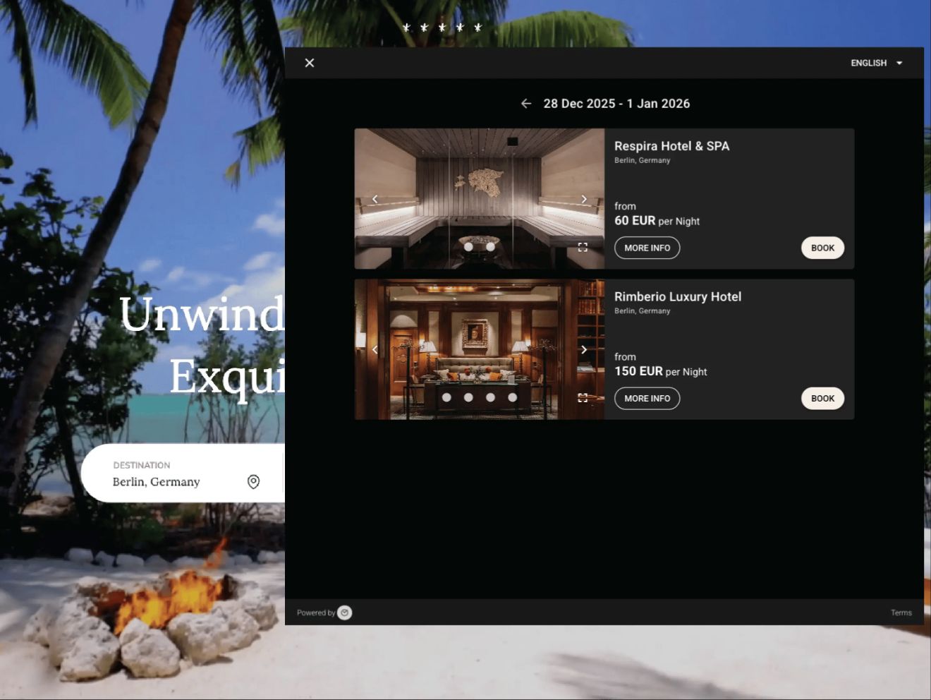 يمكن للضيوف حجز الغرف والباقات والخدمات الإضافية والأنشطة بأسعار وتوافر فوريين. يستخدم النظام نفس بيانات نظام إدارة الفنادق (PMS) الخاص بك، لذا لا حاجة لإعداد الأسعار والقيود والمخزون مرتين - لا توجد عمليات ربط ولا تأخير في المزامنة. يمكنك بيع أكثر من مجرد الإقامة، وإدارة عروض مُستهدفة، ومبيعات بين الفنادق، وتحديث المخزون في الوقت الفعلي من خلال واجهة واحدة مبنية على عملياتك الفعلية.