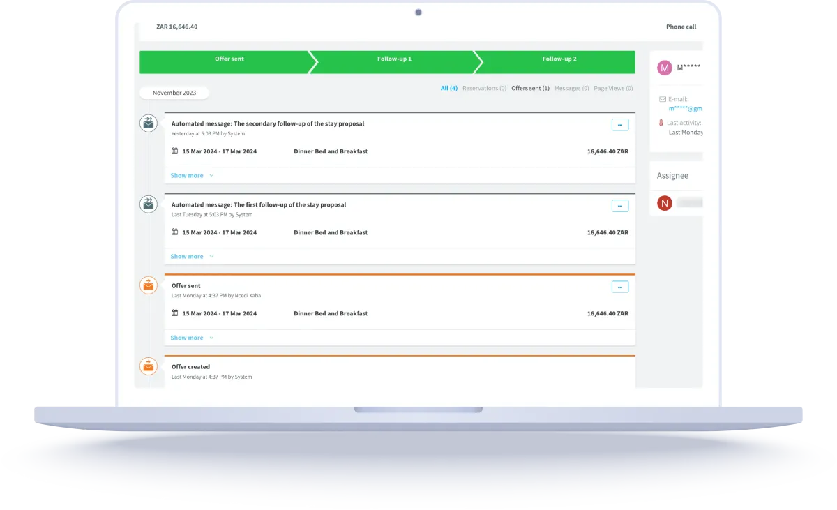 "نود أن نوصي ببرنامج Profitroom كأحد أفضل الحلول المتاحة لأتمتة عمل قسم الاستقبال والمبيعات في صناعة الفنادق. نحن نستخدم Profitroom CRM لمدة 1.5 عام. خلال هذا الوقت ، قمنا بتحسين عملية تقديم ومعالجة الاستفسارات عبر الهاتف والبريد الإلكتروني في فندقنا بشكل كبير. منذ تطبيق Profitroom CRM ، تم اختصار وقت الاستجابة للاستعلام عن تقييم الإقامة بأكثر من النصف. بفضل Profitroom CRM ، قللنا أيضًا من احتمال حدوث أخطاء عند إنشاء حساب الإقامة. النظام بديهي وسريع للغاية ويتيح عمليات بيع نشطة ، بدءًا من الاتصال الأول ، مروراً بإرسال عرض ، إلى النظام الآلي لإرسال التذكيرات ، ما يسمى بـ "المتابعة" ، المنتهية. بالإضافة إلى ذلك ، تتم عملية خدمة الاستفسار بأكملها في مكان واحد ، مما يسمح للعديد من المستخدمين بمتابعة التقدم المحرز. نحن مقتنعون بأن كل عنصر يتلقى العديد من الاستفسارات حول تقييم الإقامة عبر الهاتف أو البريد الإلكتروني سيستفيد استفادة كاملة من Profitroom CRMنود أن نوصي ببرنامج Profitroom كأحد أفضل الحلول المتاحة لأتمتة عمل قسم الاستقبال والمبيعات في صناعة الفنادق. نحن نستخدم Profitroom CRM لمدة 1.5 عام. خلال هذا الوقت ، قمنا بتحسين عملية تقديم ومعالجة الاستفسارات عبر الهاتف والبريد الإلكتروني في فندقنا بشكل كبير. منذ تطبيق Profitroom CRM ، تم اختصار وقت الاستجابة للاستعلام عن تقييم الإقامة بأكثر من النصف. بفضل Profitroom CRM ، قللنا أيضًا من احتمال حدوث أخطاء عند إنشاء حساب الإقامة. النظام بديهي وسريع للغاية ويتيح عمليات بيع نشطة ، بدءًا من الاتصال الأول ، مروراً بإرسال عرض ، إلى النظام الآلي لإرسال التذكيرات ، ما يسمى بـ "المتابعة" ، المنتهية. بالإضافة إلى ذلك ، تتم عملية خدمة الاستفسار بأكملها في مكان واحد ، مما يسمح للعديد من المستخدمين بمتابعة التقدم المحرز. نحن مقتنعون بأن كل عنصر يتلقى العديد من الاستفسارات حول تقييم الإقامة عبر الهاتف أو البريد الإلكتروني سيستفيد استفادة كاملة من Profitroom CRM"