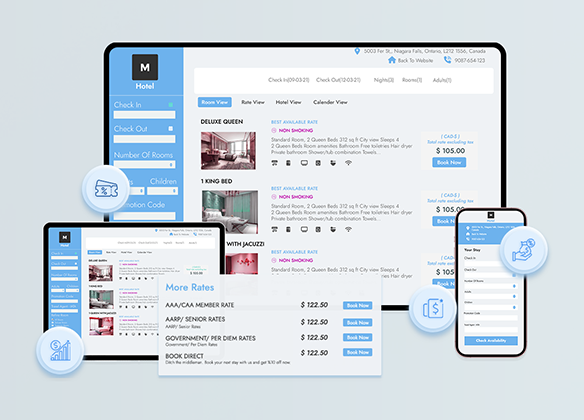 Hotelvertriebssoftware, die Preise, Verfügbarkeit und Inventar über Drittanbieterkanäle hinweg synchronisiert.