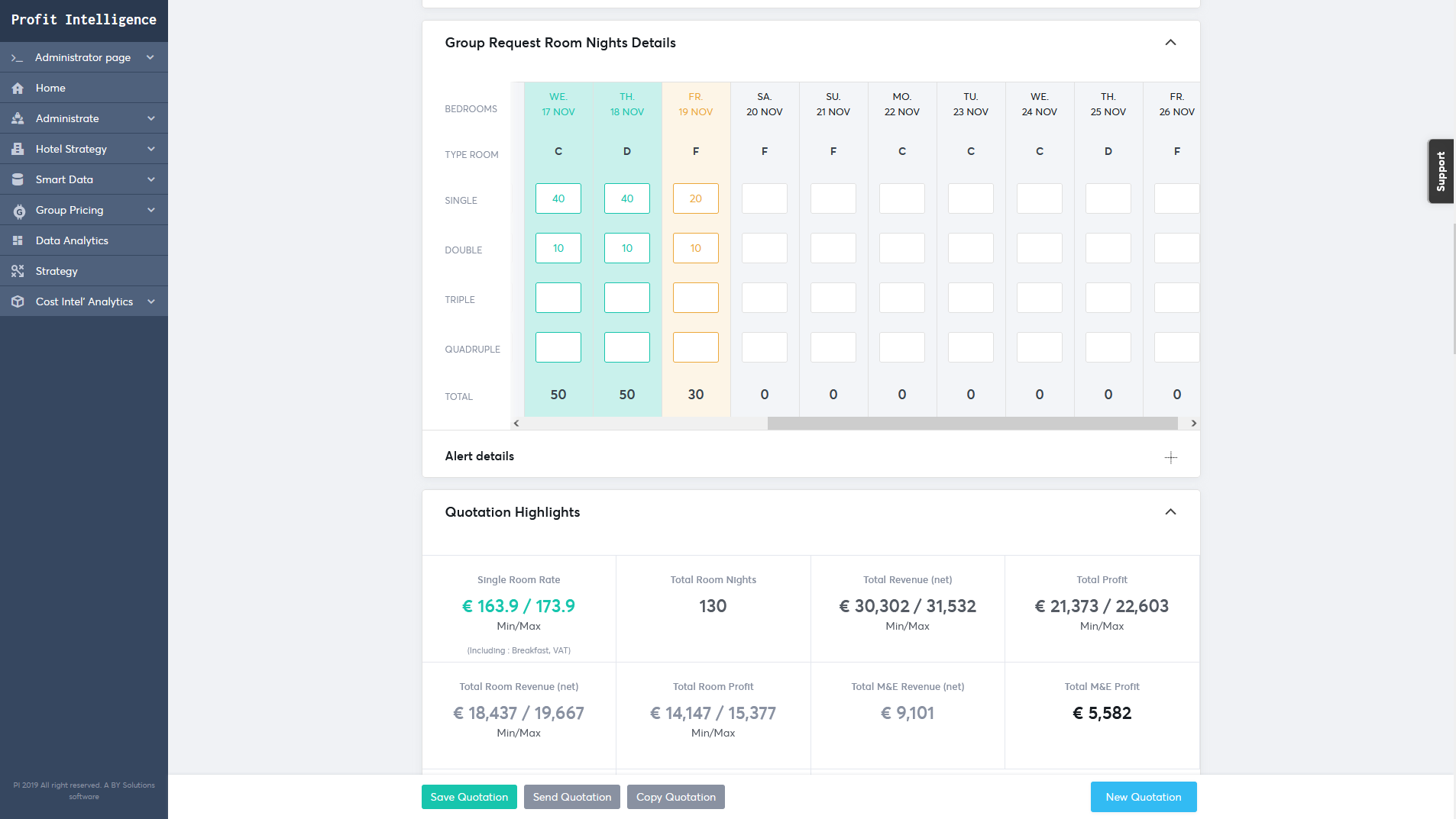 "Profit Intelligence ist eine kostengünstige und ergonomische Online-Lösung, die Hoteliers dabei unterstützt, strategische Entscheidungen zu treffen und Gewinne auf sehr einfache Weise zu optimieren. Dies ist kein weiteres Revenue Management System, sondern viel mehr! Unser Ziel ist es, von unseren Kunden und Experten entworfene, flexible, hotelspezifische Anwendungen anzubieten, die innerhalb weniger Tage implementiert und einsatzbereit sind. Unsere Module sind separat erhältlich, damit Sie Ihr eigenes Werkzeug bauen können! Wir glauben, dass die Wahl der richtigen Technologie nicht nur Ihr Endergebnis steigert, sondern auch internen Alligatoren, SOPs und Strategien dient."