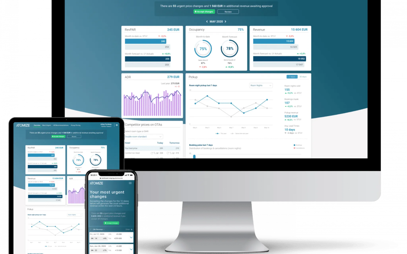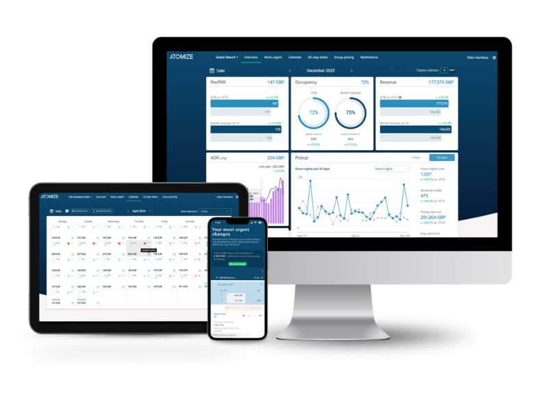 Atomize, die automatisierte, datenbasierte Preisgestaltung, unterstützt Hotels dabei, ihren Umsatz mit minimalem manuellem Aufwand zu maximieren. Sie liefert Preisempfehlungen in Echtzeit basierend auf aktuellen Markt- und Nachfragesignalen, verfügt über eine übersichtliche und intuitive Benutzeroberfläche und lässt sich nahtlos in gängige PMS-Systeme integrieren. Dank ihrer leistungsstarken Automatisierung, zuverlässigen Prognosen und aussagekräftigen Erkenntnisse ist dynamische Preisgestaltung einfach und hocheffektiv.