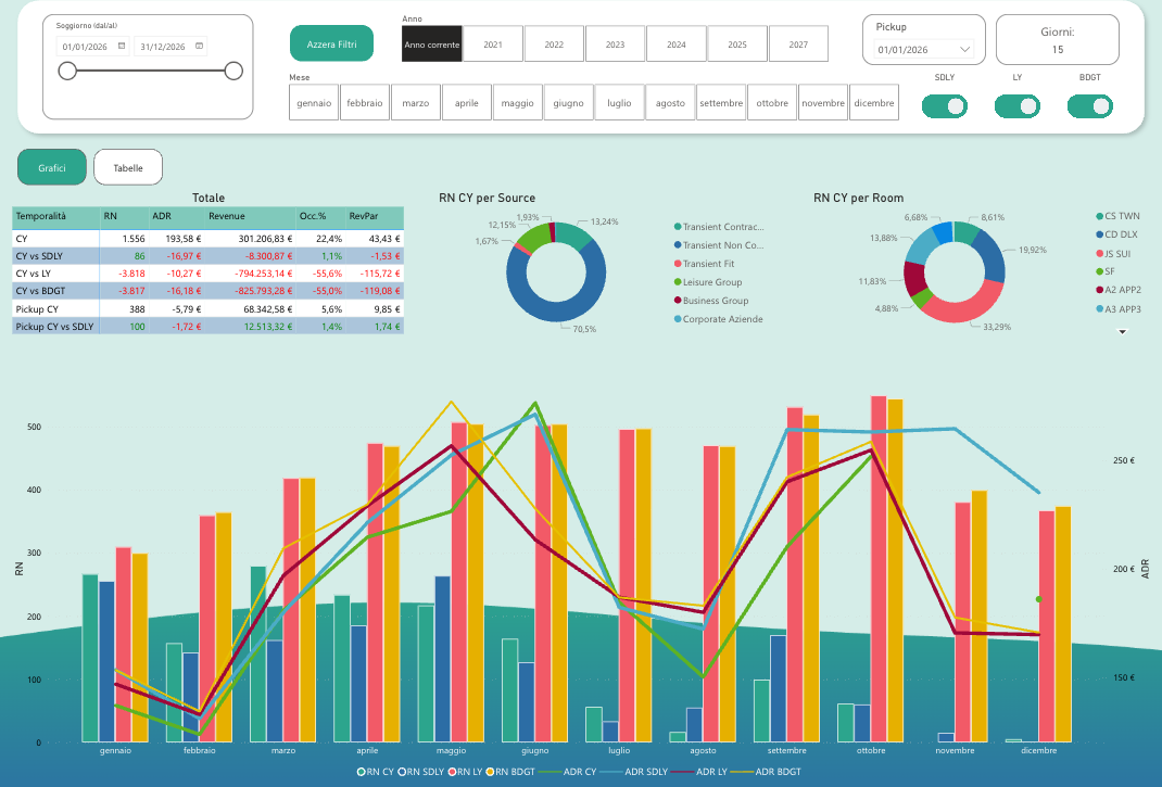 Mit dem Buchungstempo können Sie größere oder kleinere Zeiträume (einen oder mehrere Monate oder Wochen) analysieren und das Kalenderjahr mit dem Jahresverlauf (SDLY) auf täglicher (Grafik) und Gesamtbasis (Tabellen) vergleichen. Hier können Sie die Daten auch nach Buchungszeitraum (von/bis) filtern.