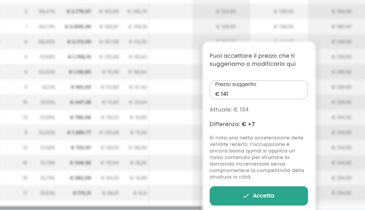 Unsere dialogbasierte KI analysiert Daten in Echtzeit und schlägt die optimalen Preise für jedes Zimmer, Datum und jeden Kanal vor. Interagieren Sie mit dem integrierten Assistenten und erhalten Sie übersichtliche Analysen, Simulationen und Berichte, die Sie mit dem Hotel teilen können.