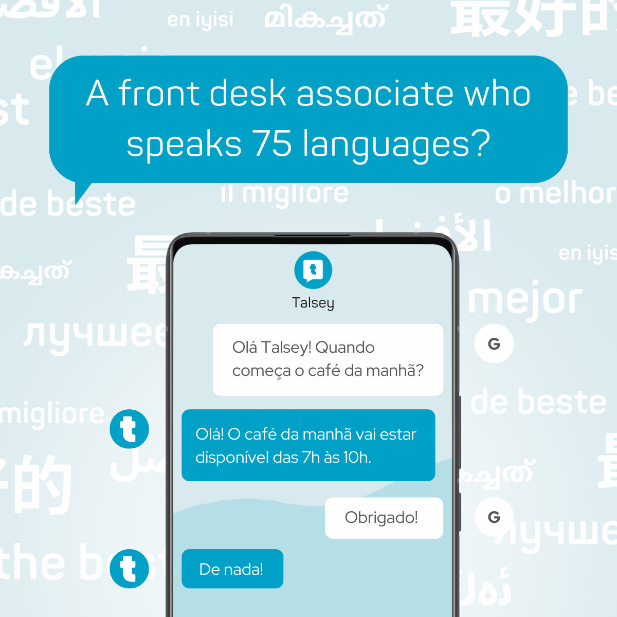 "Talsey AI is the world's most advanced guest engagement system. Talsey is trained for each property she works with and uses SMS & WhatsApp to digitally manages the guest journey from end to end. From answering questions, providing support and notifying hotel associates about requests to intelligently promoting in-house F&B and ancillary revenue opportunities, Talsey is the ultimate tool for hotels & resorts."