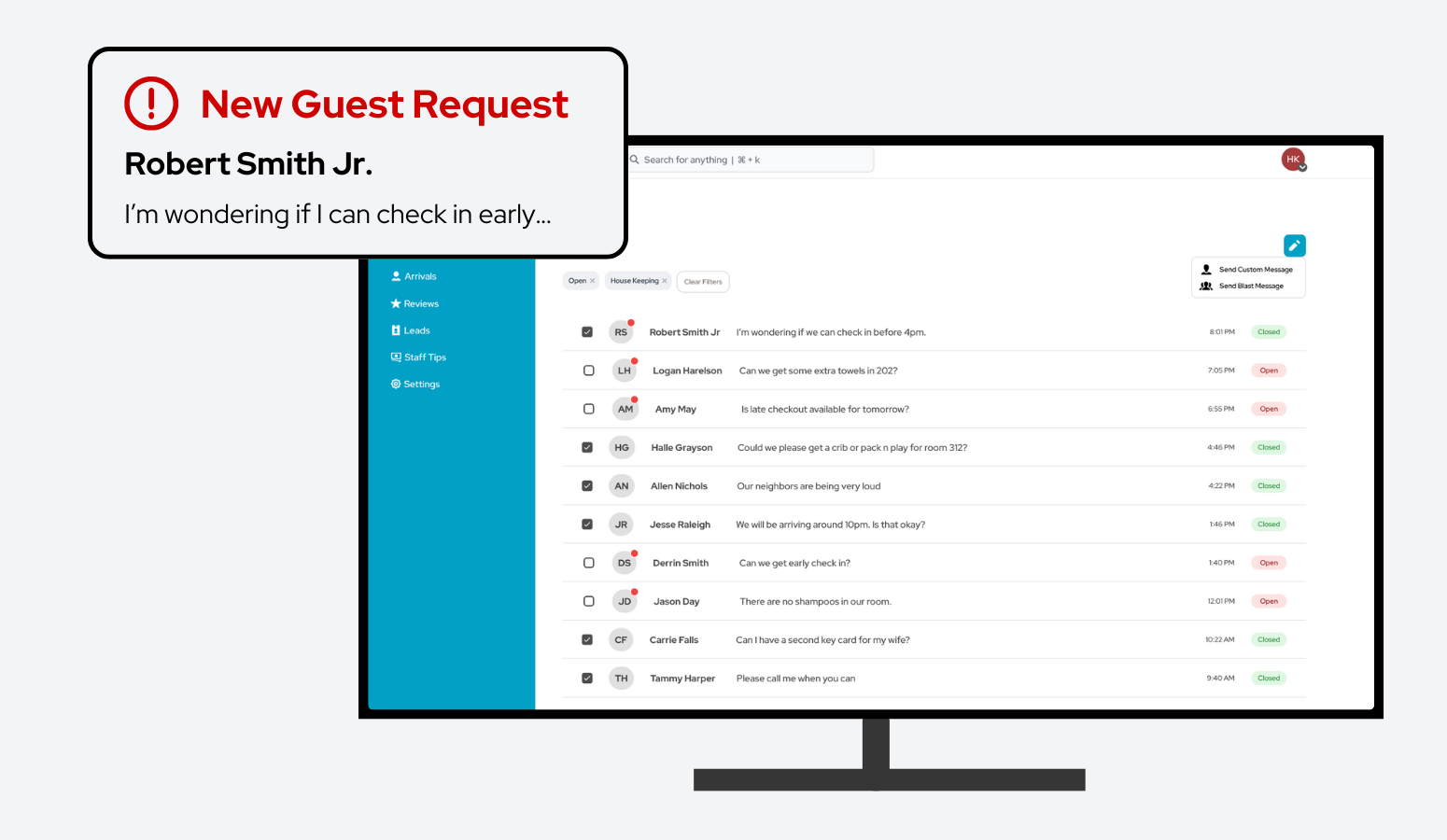 Conéctese con los huéspedes instantáneamente a través de mensajería en tiempo real, respuestas automatizadas y comunicación fluida.