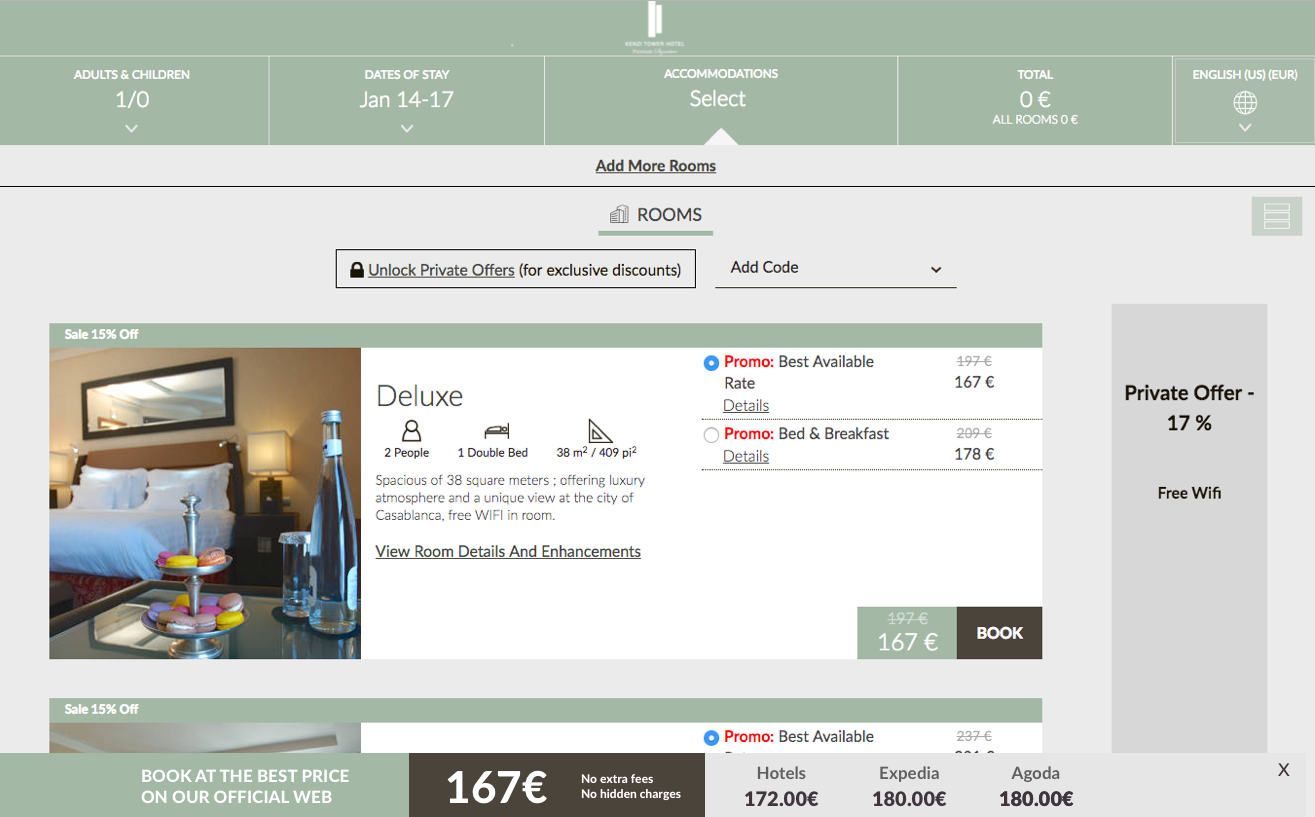 A los huéspedes normalmente les gusta reservar en OTA. Además, estas agencias utilizan fuertes promociones para que los huéspedes reserven en sus sitios web. Por lo tanto, es clave utilizar todas las herramientas que tenemos a nuestra disposición para aumentar las ventas en nuestro sitio web, y 123compare.me es una de las mejores herramientas para que esto suceda. Hemos utilizado la herramienta comparativa para mostrar que los precios en nuestro sitio web son mucho mejores que los que el huésped encontraría en las OTA.