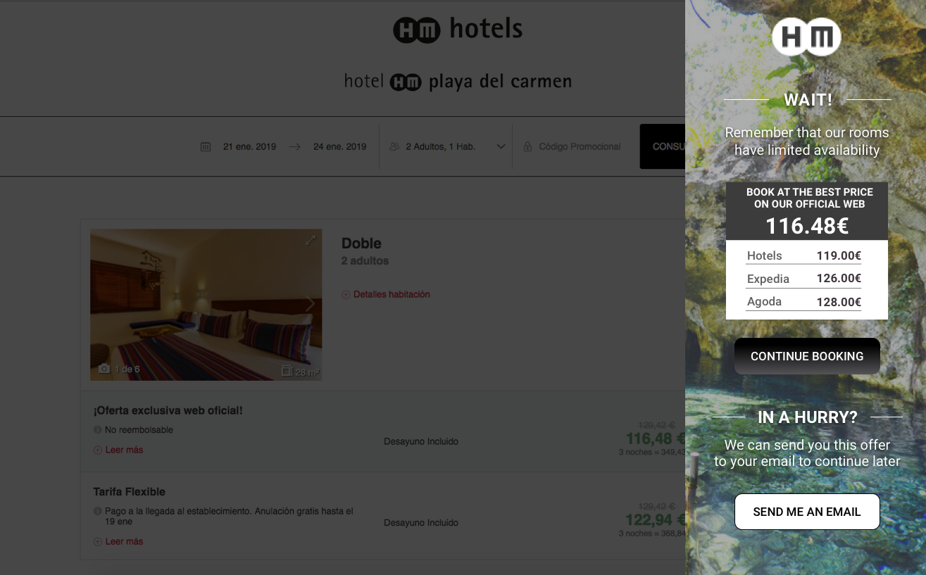 Ofrecer la posibilidad de agregar un Price Match cuando se ofrecen disparidades en OTAS para atraer a los clientes y evitar que reserven con un tercero