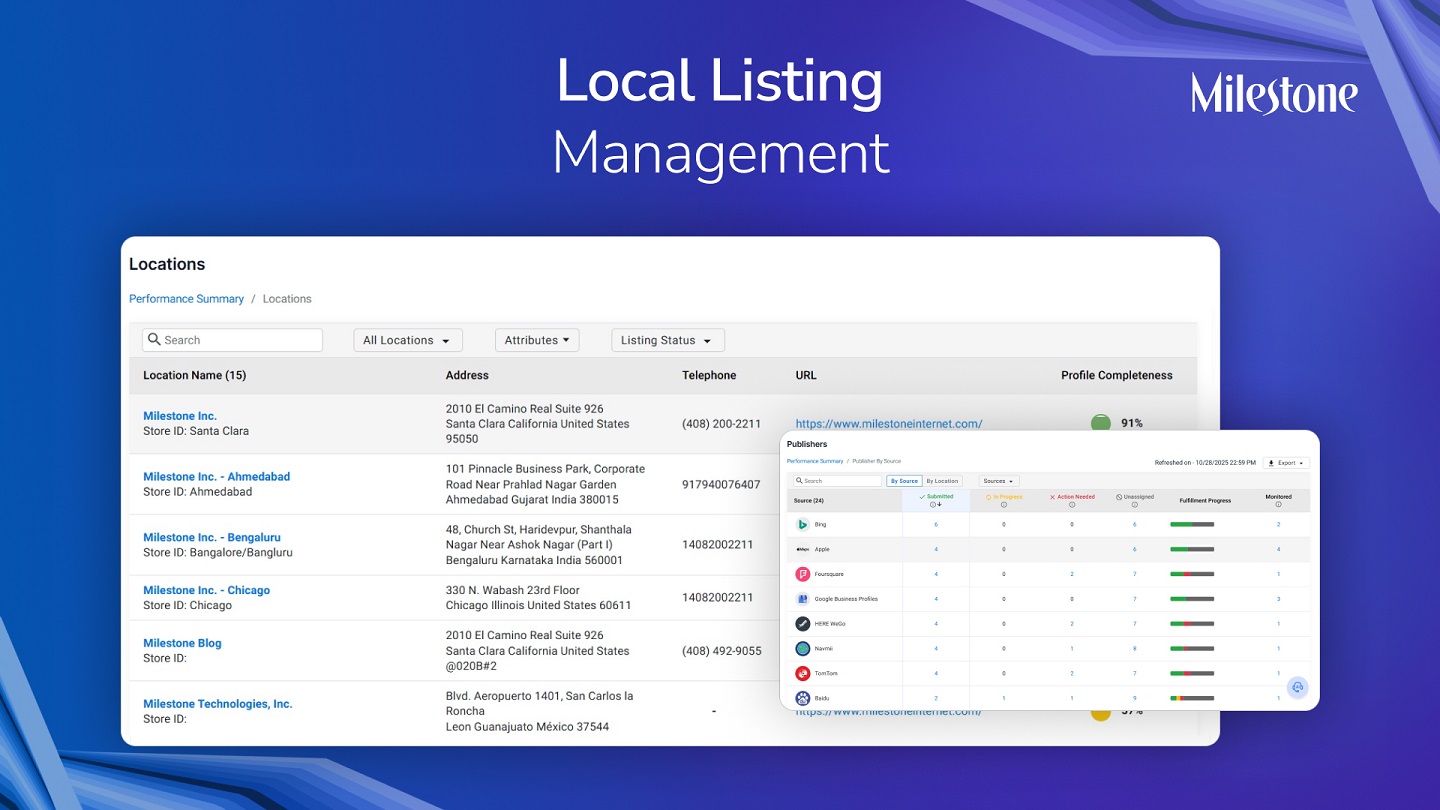 "Milestone es un proveedor líder de software y servicios de marketing digital para hotelería, comercio minorista y finanzas. Ofrecemos una gama completa de soluciones que incluyen diseño de sitios web y dispositivos móviles, creación de contenido, SEO, análisis e inteligencia competitiva. Nuestras soluciones y tecnología de vanguardia generan ingresos y ROI para clientes de todo el mundo. Más de 2000 empresas en todo el mundo hacen negocios con Milestone, incluidas las principales cadenas hoteleras, los principales minoristas y empresas de servicios financieros. Milestone ha obtenido más de 300 premios y una reputación por combinar un diseño sobresaliente con capacidades tecnológicas avanzadas. Milestone es una de las empresas de más rápido crecimiento de Silicon Valley Business Journals y es una empresa Inc. 5000. Perfiles de redes sociales: Me gusta en Facebook: fb.comMilestoneInc Síganos en Twitter: @MilestoneMktg Míranos: YouTube.comMilestoneInternet"