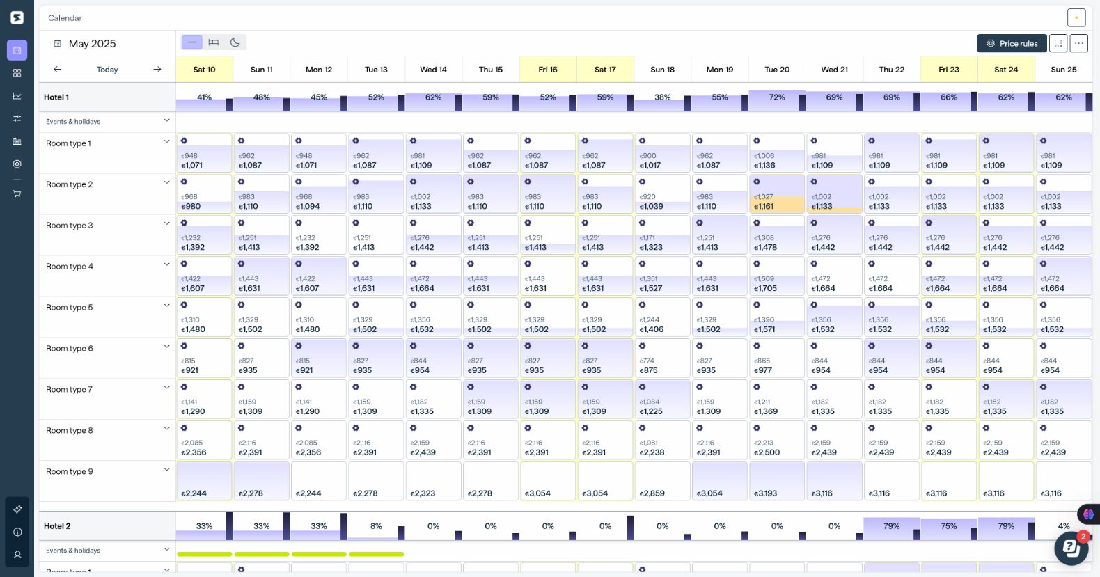 Smartpricing recopila y analiza las reservas históricas y futuras, la demanda local, las tarifas de la competencia y las tendencias del mercado. Este enfoque basado en datos garantiza que sus precios siempre se ajusten a las condiciones del mercado en tiempo real, sin trabajo manual ni conjeturas.