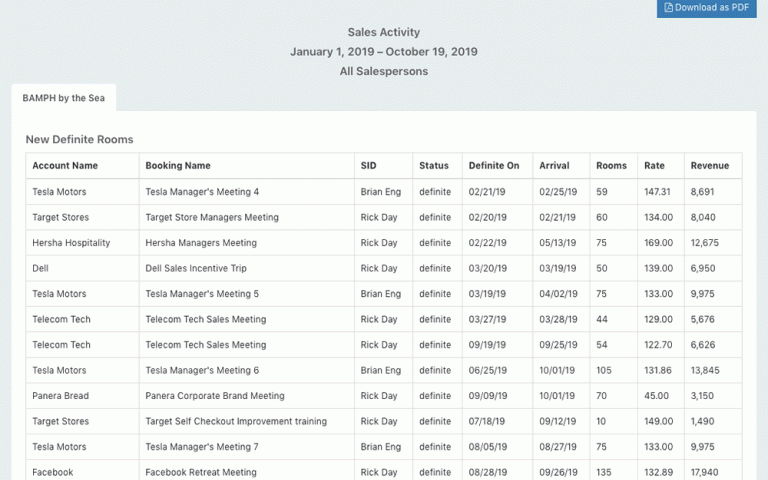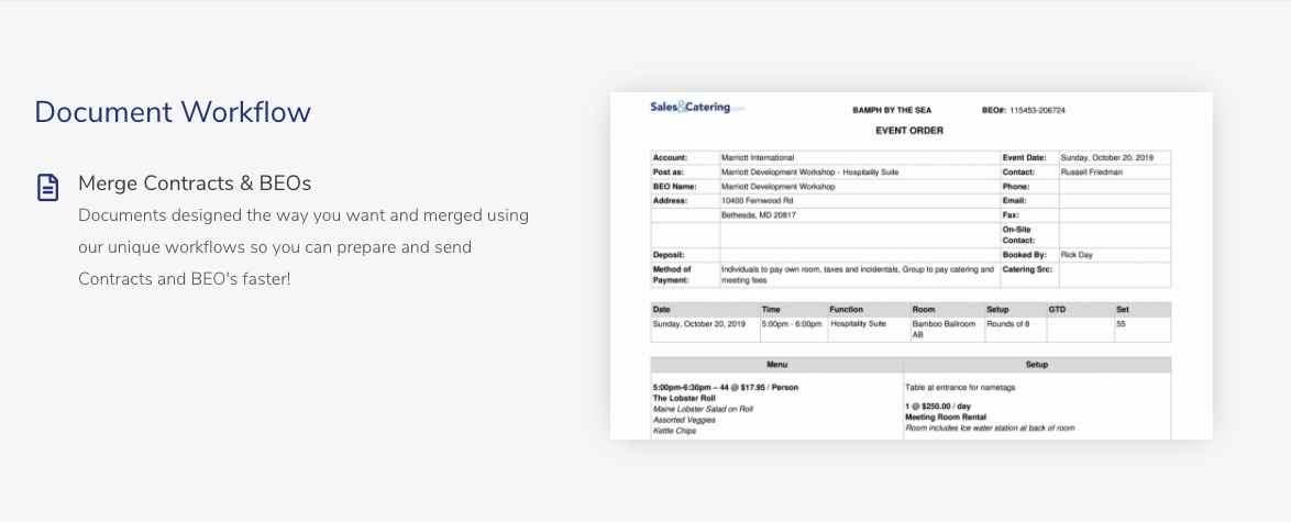 Rapports et contrats de vente et de vente que je peux utiliser pour envoyer aux clients et aux différents départements des informations détaillées sur les groupes entrants et les événements de restauration/réunions.
