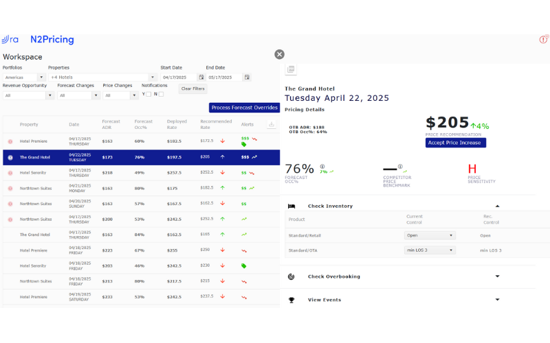 Hoteliers like N2 Pricing for its innovative revenue optimization features, including real-time market reaction and automated pricing strategies. Users report substantial revenue growth and an ability to surpass competition by making data-driven decisions. While users appreciate the system’s predictive capabilities, some note challenges with hurdle rate adjustments and mobile access. Overall, N2 Pricing is praised for enhancing strategic revenue management and alleviating manual tasks, leading to increased operational efficiency and profitability.