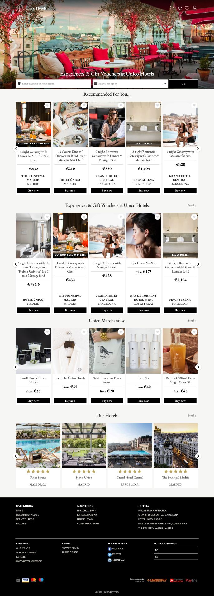 "Brunch du dimanche, soins au spa, goûter, menus dégustation, forfait journée piscine, escapades romantiques… vos invités adorent les expériences uniques que vous créez. Mais n'oubliez-vous pas quelqu'un ? Il y a des millions de résidents locaux vivant à votre porte qui aimeraient en profiter aussi ! Nous créons des boutiques en ligne de belle marque pour les hôtels du monde entier afin de vendre des chèques-cadeaux et des expériences aux résidents locaux. Multidevises, multilingues et prenant en charge plusieurs passerelles de paiement, nous sommes la seule solution prenant en charge les hôtels indépendants ainsi que les grandes chaînes. Nos clients comprennent St. Regis, Fairmont, Nobu et des LHW indépendants à travers le monde, des États-Unis à l'Europe et à l'Asie. Rejoignez-les pour augmenter immédiatement vos revenus, optimiser les points de vente, créer du buzz organique sur les réseaux sociaux et profiter des effets à long terme sur MICE. Les hôtels ne sont pas réservés qu'aux touristes."