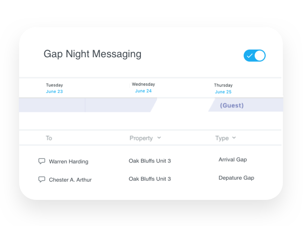 "Breezeway’s messaging app empowers short-term and vacation rental operators to automate guest communication programs and deliver more service throughout each stay. Purpose built for hospitality providers, Breezeway’s messaging tools make it easy to send bulk messages, resolve in-house issues, share status updates on maintenance and concierge services, and offer guests stay extensions when there are gaps in between reservations. With Breezeway Messaging, you can: - Automate Communication with Two-Way SMS - Send Messages to Multiple Guests at Once - Monitor Conversations Through One Central Portal - Drive Additional Revenue with ‘Stay Extension’ Offers"