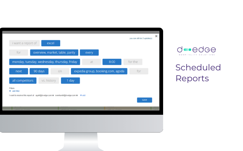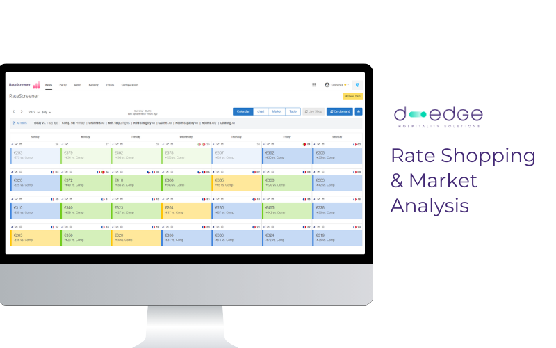 D-EDGE מאפשר לעקוב אחר תמחור מתחרים ושוויון עבור כל המלונות תוך מתן דוחות להבנת הביצועים העסקיים של המלון. הפתרונות שלה זמינים ב-22 מדינות ובכל סוגי המלונות.