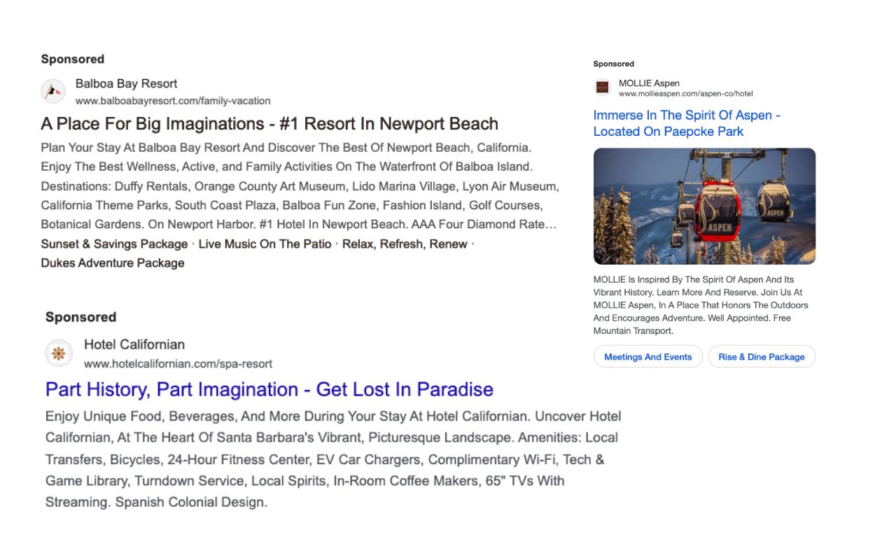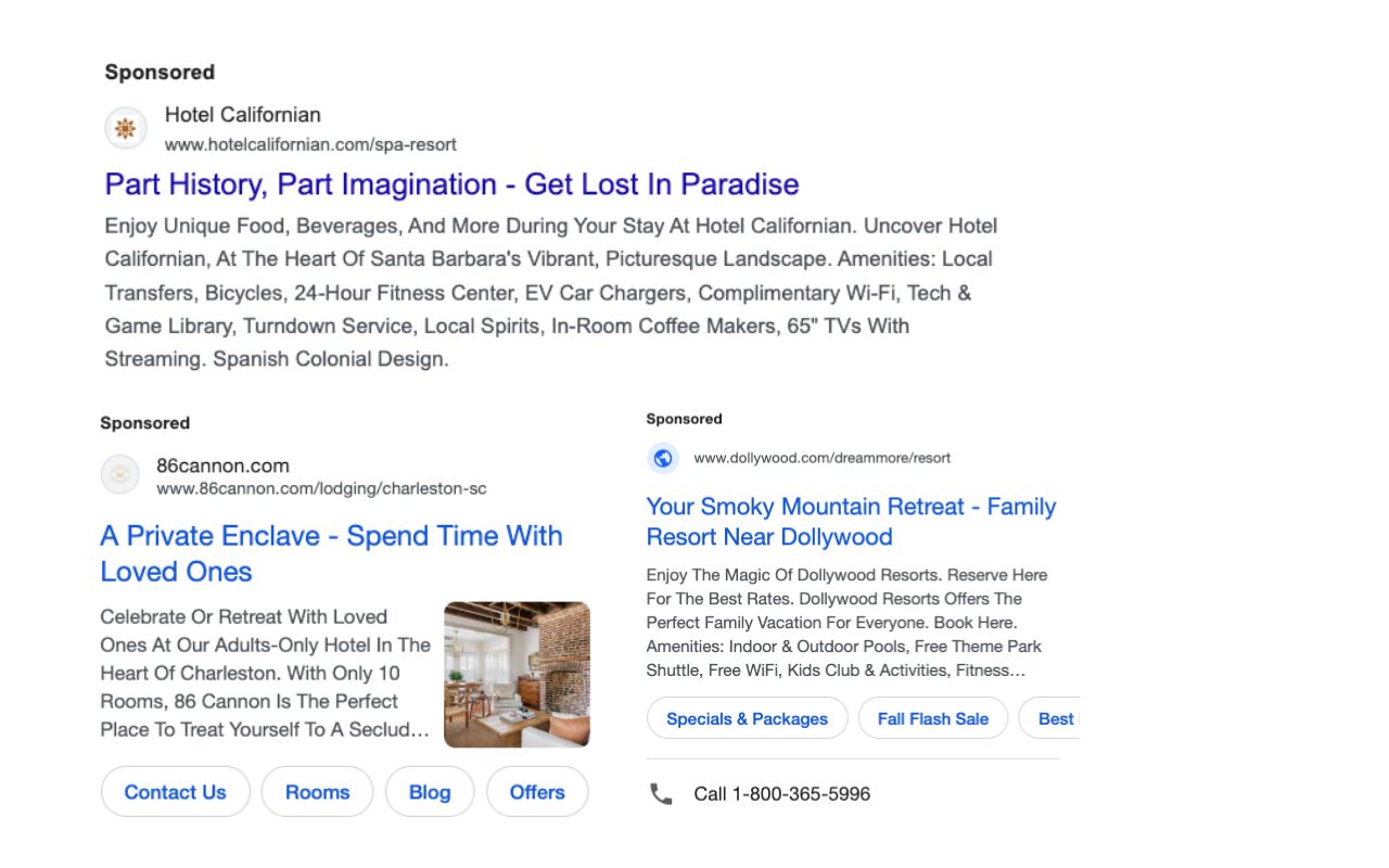 "We are absolutely thrilled with the time, and attention GCommerce Solutions has given our property. Since our partnership with them, we have seen great results in our metasearch, display, and direct-booking campaigns. We also love the proactive approach the whole team makes and their creative approach to any obstacles we may encounter. A great thank you to the entire GCommerce team."