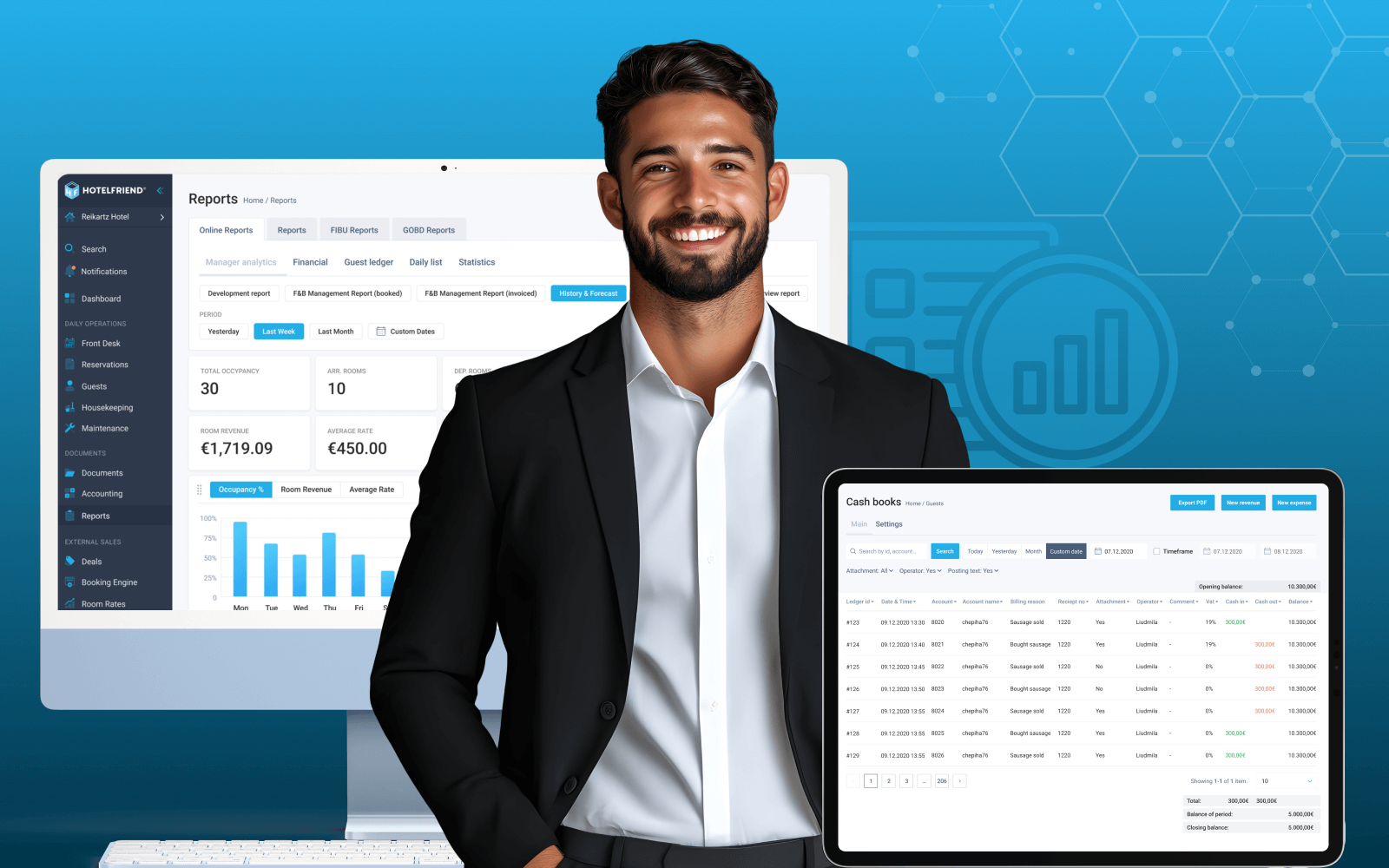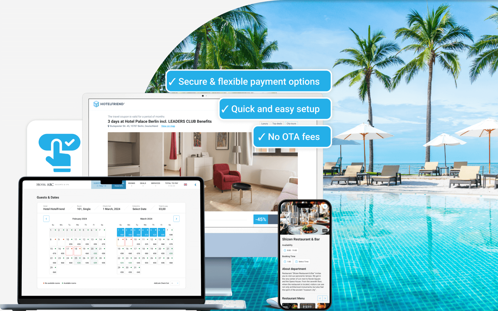 "HotelFriend is a hotel management software (PMS) for hospitality businesses that unites property management, booking and channel management, POS, event management, and guest experience tools in an all-in-one platform HotelFriend AG is a leading provider of innovative software and hardware solutions for automating hotel operations. Our mission is to streamline workflows and improve guest experiences through cutting-edge technology. We work with big hotels worldwide, providing tailored solutions that meet the evolving demands of the hospitality industry. HotelFriend AG operates from a German data center, offering a global platform for hotel businesses. We offer flexible solutions with the Select package, creating a personalized Property Management System by choosing from a variety of 20+ pre-built modules. With the Enterprise package, HotelFriend offers custom development to build tailored solutions and strategic collaboration for your propertiesʼ Success Learn more about HotelFriend pricing by following the link https://hotelfriend.com/b/pricing HotelFriend was founded in 2016 to help hotels improve guest satisfaction and digital presence. With a portfolio spanning R&D, IT consulting, staff training, and other key areas, HotelFriend is trusted by hundreds of hotels, restaurants, stadiums, cruise ships, and wellness facilities, offering scalable solutions that enhance both guest satisfaction and operational efficiency. We make sure that you are 100% in compliance with the latest regulations, including GoBD, TSE, GDPR, and DSFinVK. Start your journey with a trusted team of innovators who are here to put you at the center of what you do."