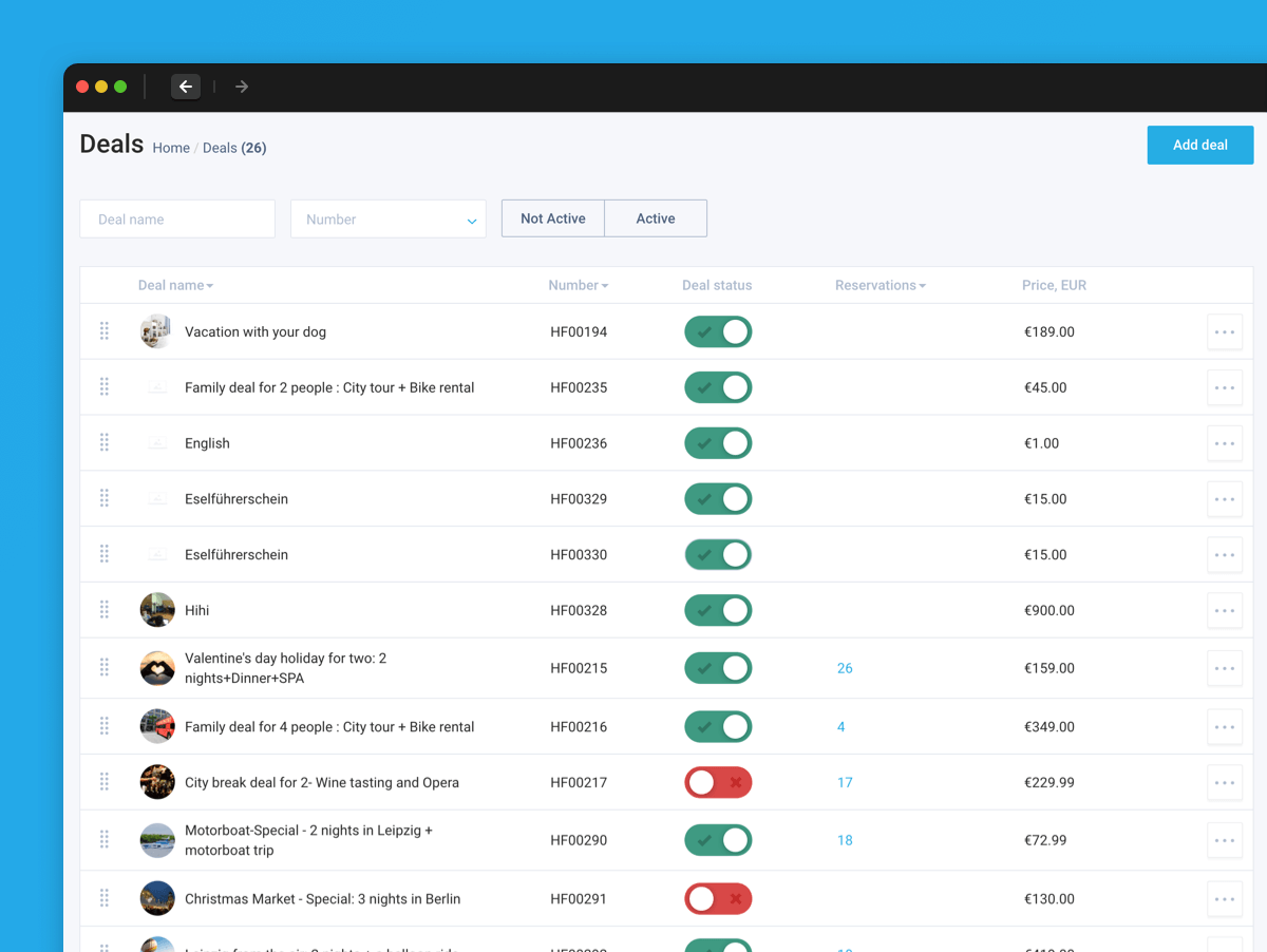 Potente sistema di gestione dei partner (PMS) con prezzi dinamici e gestione efficiente dei canali di distribuzione.
