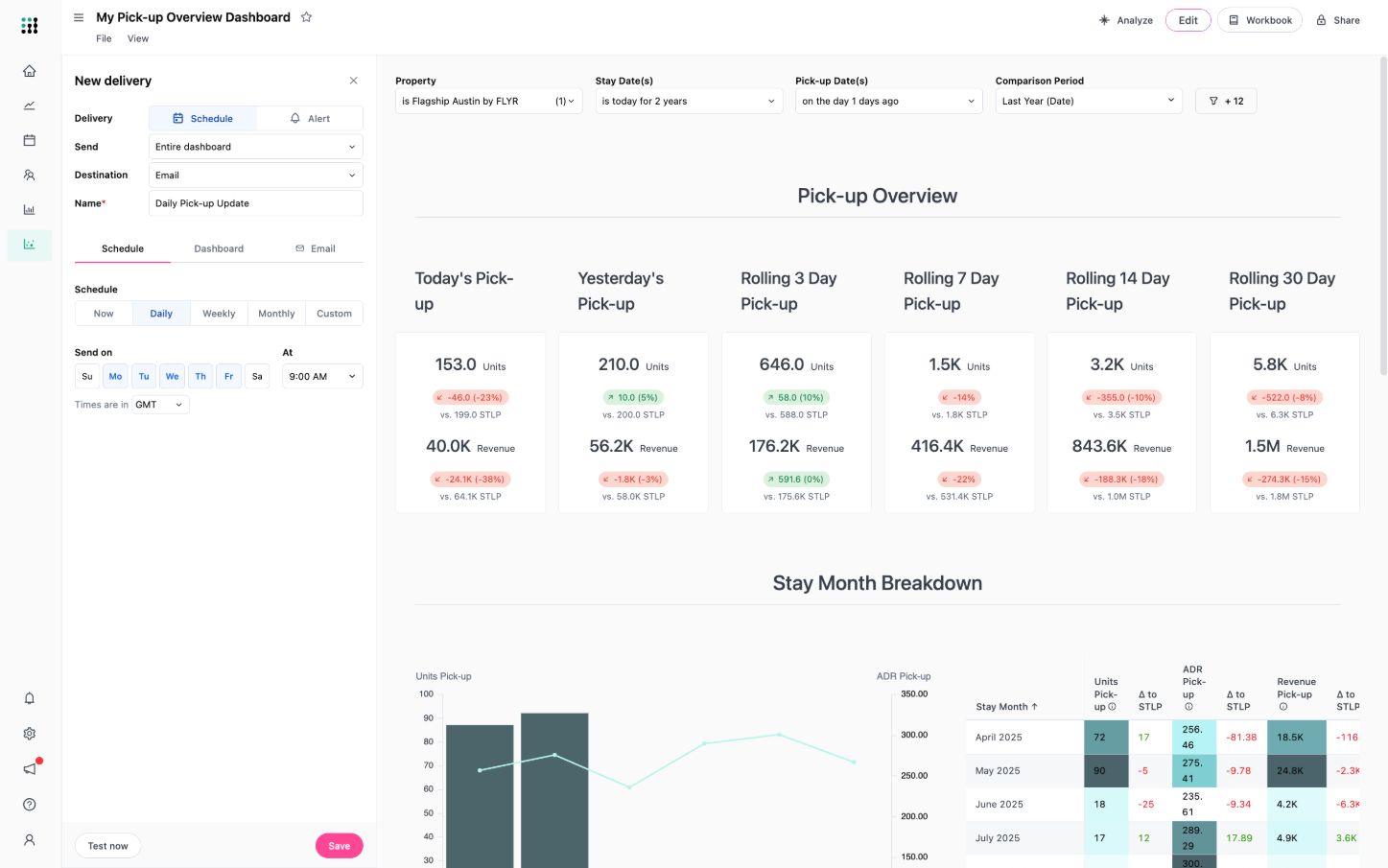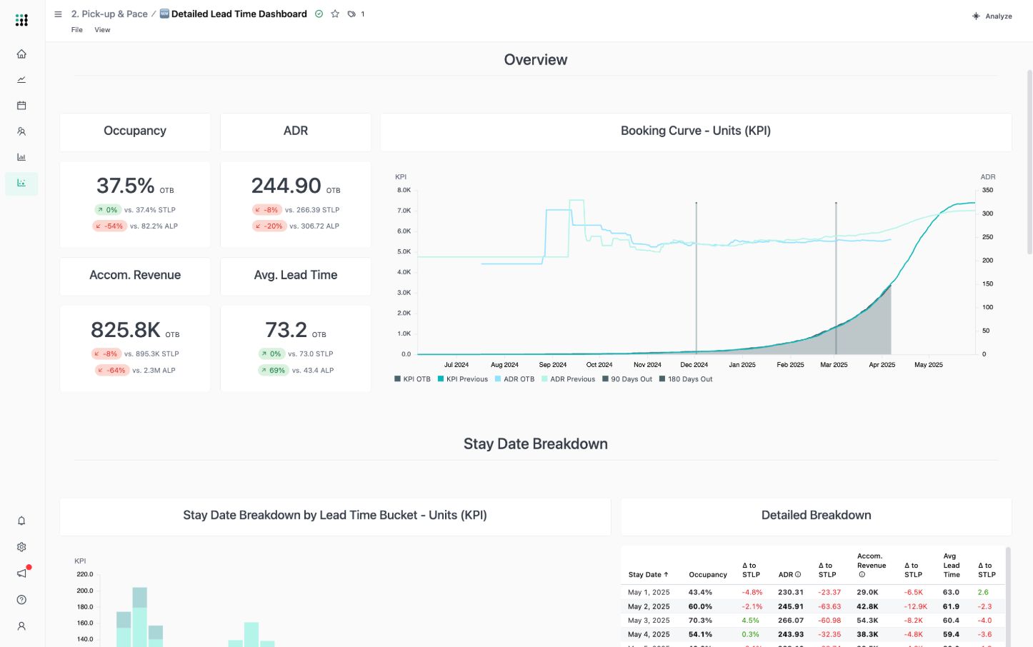Confronta le tue prestazioni con la concorrenza. Accedi ai dati di mercato da fonti affidabili come STR, Lighthouse e RateGain per confrontare le tue prestazioni con la concorrenza. Identifica le opportunità di prezzo, ottimizza i canali di distribuzione e adatta le strategie in base a informazioni di mercato in tempo reale.