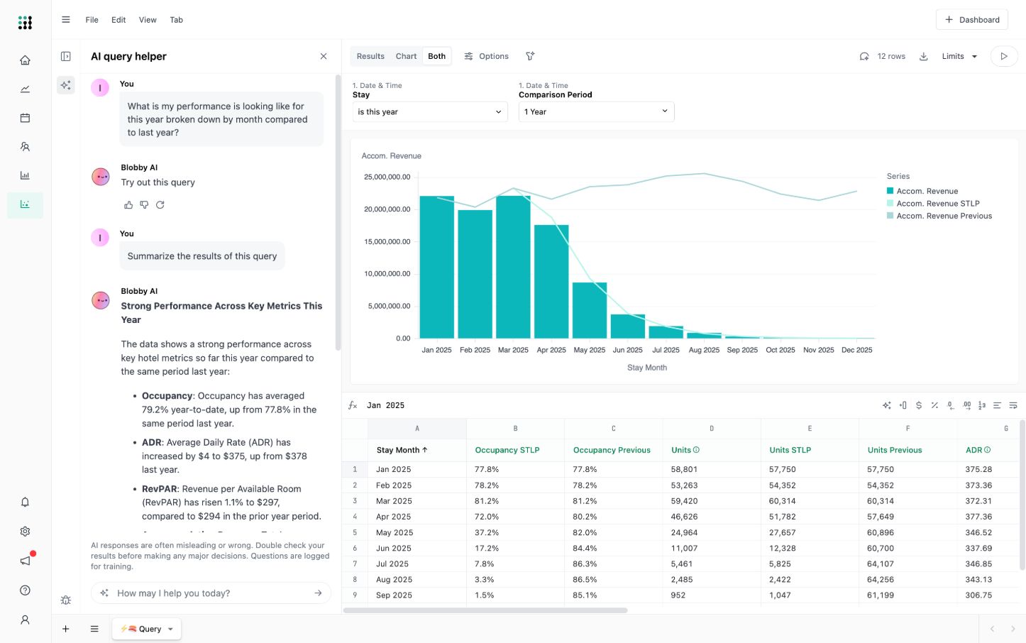 FLYR’s AI-driven Business Intelligence solution seamlessly merges hourly PMS updates with external data from STR, Lighthouse, and Amadeus for a comprehensive, real-time view of your hotel’s performance. Natural language queries, AI-based summaries, and interactive chat let your team refine revenue strategies without wrestling with complex reporting. By automatically identifying shifts in demand or competitive rates, you can adapt instantly and capture more revenue. Predictive insights and real-time decision support empower every level of the operation to act quickly and confidently. The result is unparalleled agility, higher revenue potential, and streamlined collaboration.
