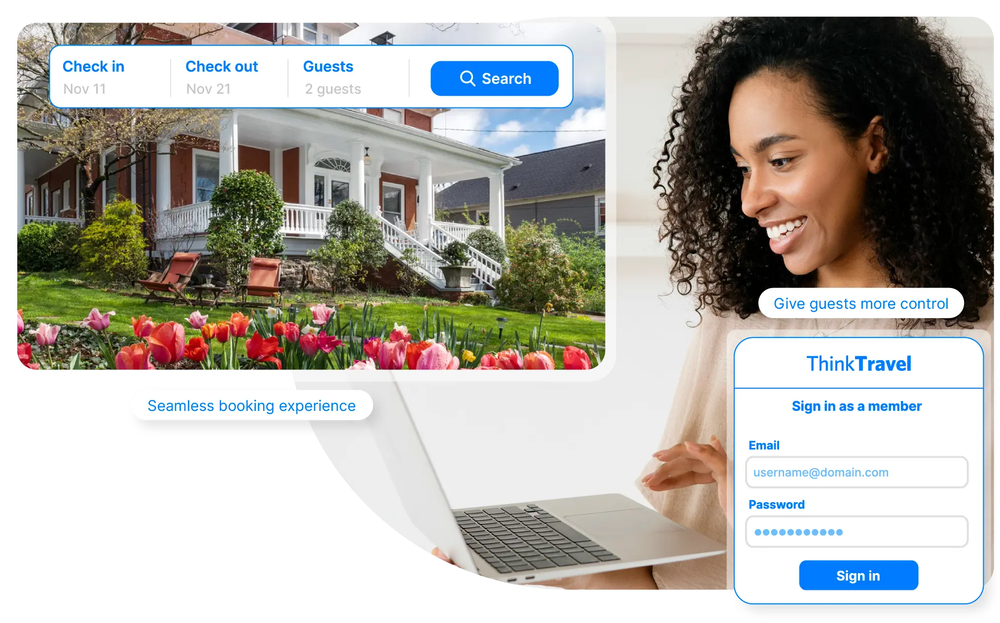 "より組織化され、ビジネスを管理していると感じながら、時間とエネルギーを節約します。 ThinkReservationsは、習得が容易で使いやすい一方で、高速でプロフェッショナル、そして包括的です。あなたが机の後ろに座るためにこのビジネスに参入しなかったことを私たちは知っています!オンライン予約エンジンとチャネルマネージャーを備えたオールインワンの資産管理システムにより、あなたとあなたのチームはあなたのビジネスではなく、あなたのビジネスにより多くの時間を費やすことができます。無料のデモについてはお問い合わせください。"