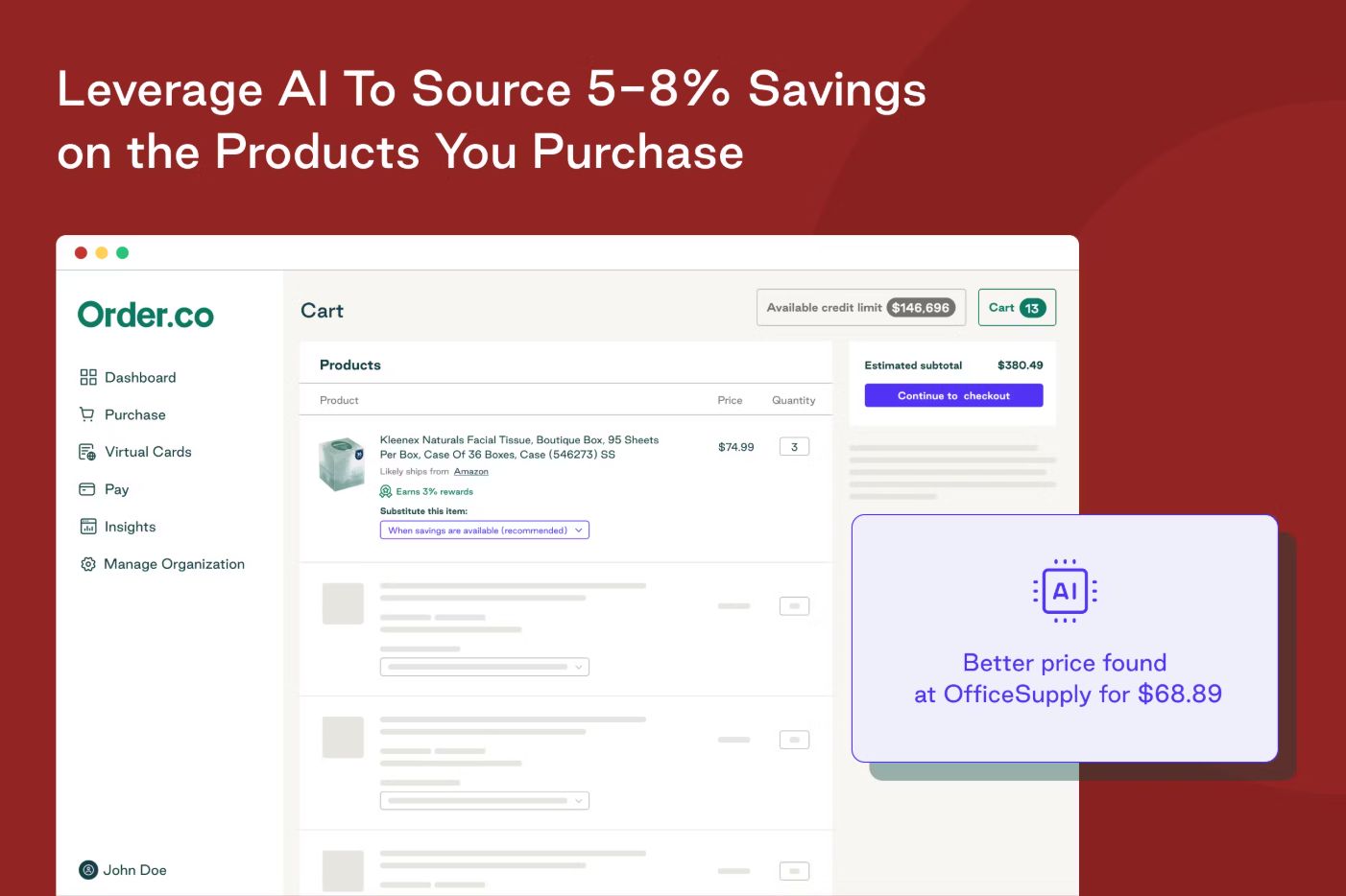 "Modernize your procurement process with Order.co – automate PO management, sourcing, approvals and payments all in one customizable platform. Plus, improve your budgeting, forecasting, and reporting with real-time spend insights by user, location, cost center, and more. Hundreds of businesses, like WeWork, [solidcore], Hugo Boss, Verano, and Physical Rehabilitation Network are leveraging Order.co’s AI-powered sourcing technology, $4B in purchasing power, and exclusive supplier discounts to save an average of 5-8% on products, while adding resiliency to operations and avoiding supply chain disruptions. Order.co works seamlessly alongside any ERP and accounting system, including direct integrations with Quickbooks Online, Sage Intacct, Netsuite, and more to simplify your entire purchase-to-pay process. Founded in 2016 and headquartered in New York City, Order.co has raised $50M in funding from industry-leading investors like MIT, Stage 2 Capital, Rally Ventures, 645 Ventures, and more. Order.co has been proudly named as a 50 to Watch by Spend Matters and a Best Place to Work by Built In. Automate your entire procurement process, from requisition to payment, while providing visibility and control over your spend. Simplify every aspect of buying for your business in Order.co. From sourcing products to scaling purchasing across locations to automating your AP and approvals workstreams, Order.co is the platform of choice for growing businesses."