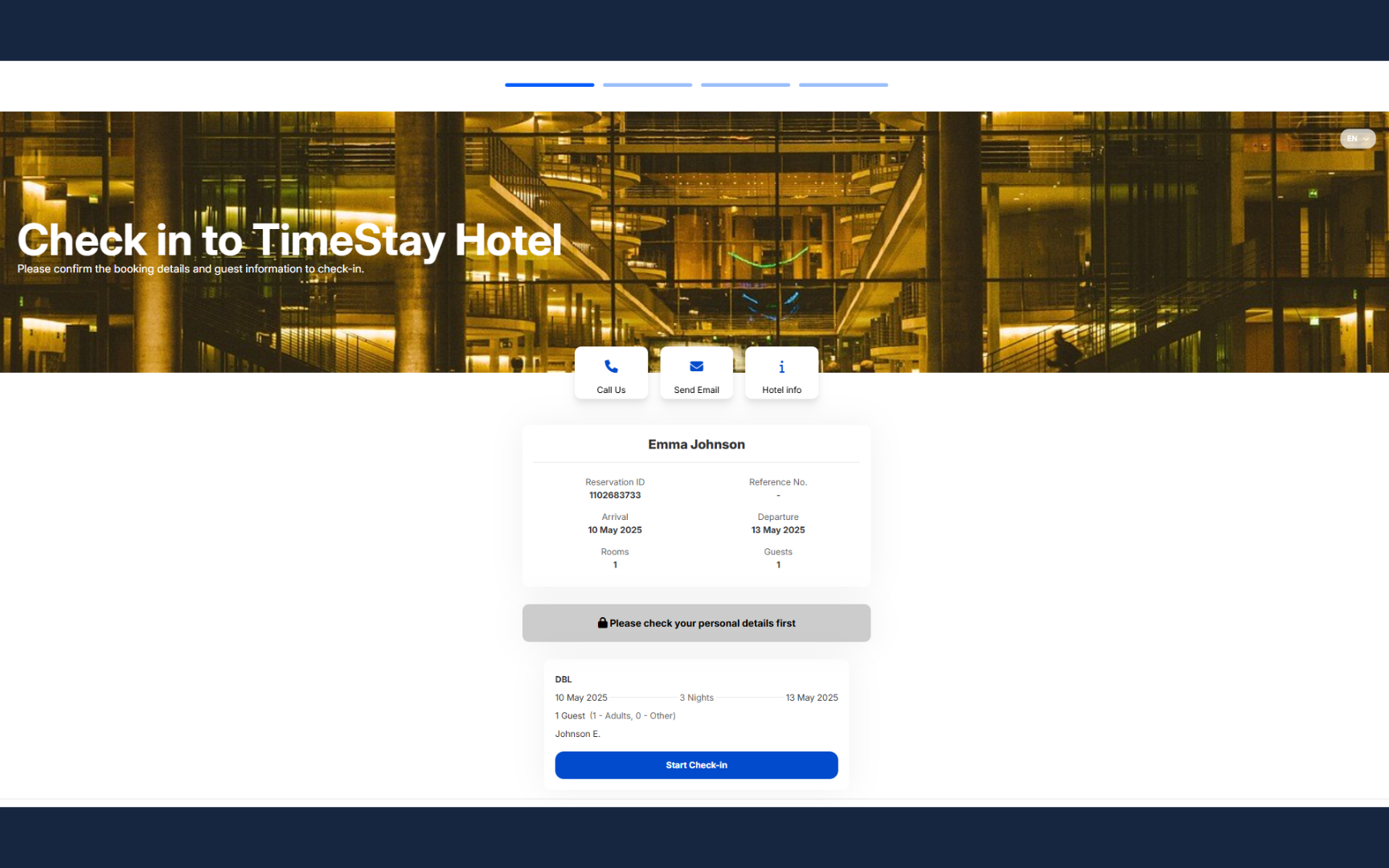 ホテルはデザインを微調整し、収集するゲスト情報を決定できるようになりました。リンクはeコンシェルジュモジュールから自動的に送信されるか、予約時に手動で生成することもできます。いずれの場合も、ゲストが送信した情報はすべてHotelTime PMSに直接送信され、到着時にすぐに利用できるようになります。
