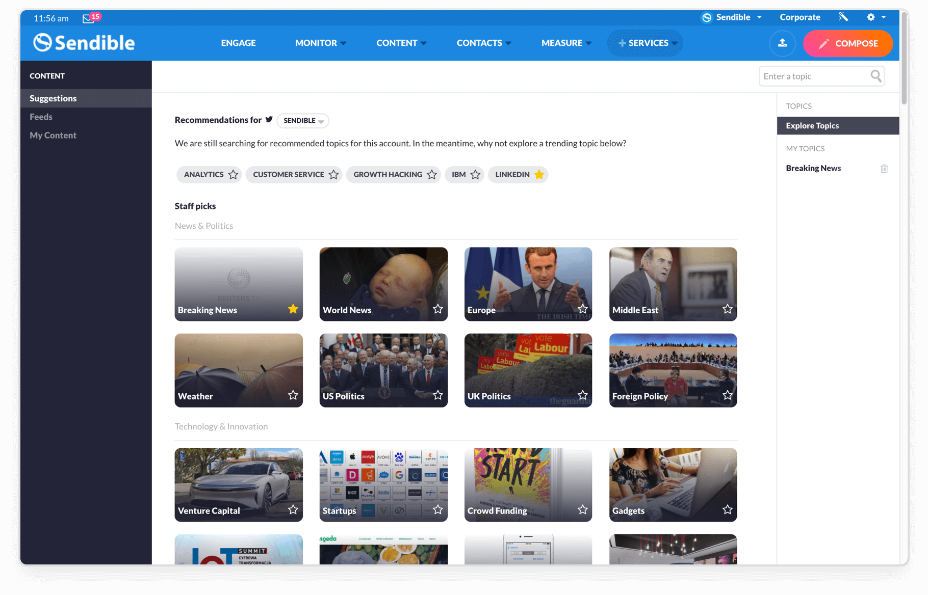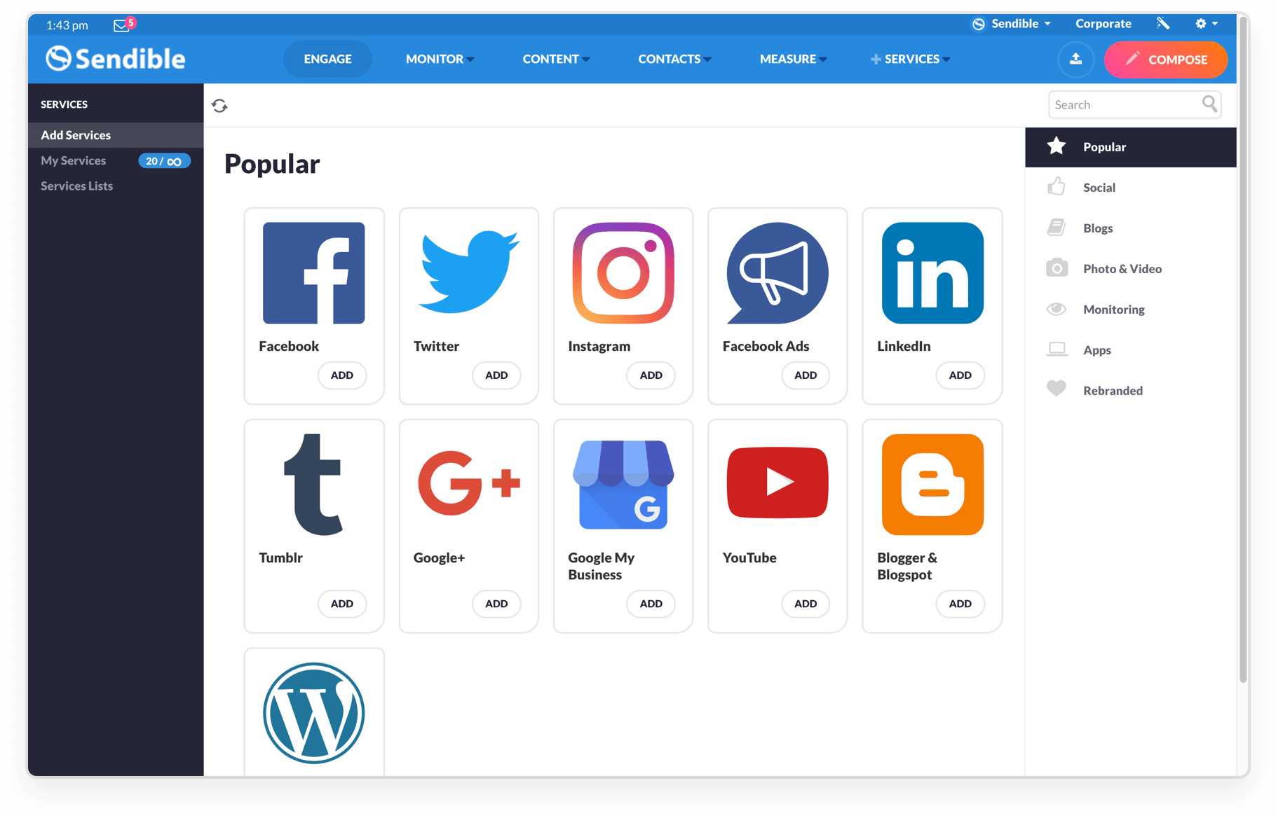 "Sendible.com is a social media marketing platform that allows individuals, agencies and small businesses to engage with their audience across multiple channels at any time. Sendible's powerful analytics allows users to track and monitor the success of their social media marketing efforts and ROI. Sendible.com is a social media marketing platform that allows individuals, agencies and small businesses to engage with their audience across multiple channels at any time. Sendible's powerful analytics allows users to track and monitor the success of their social media marketing efforts and ROI."