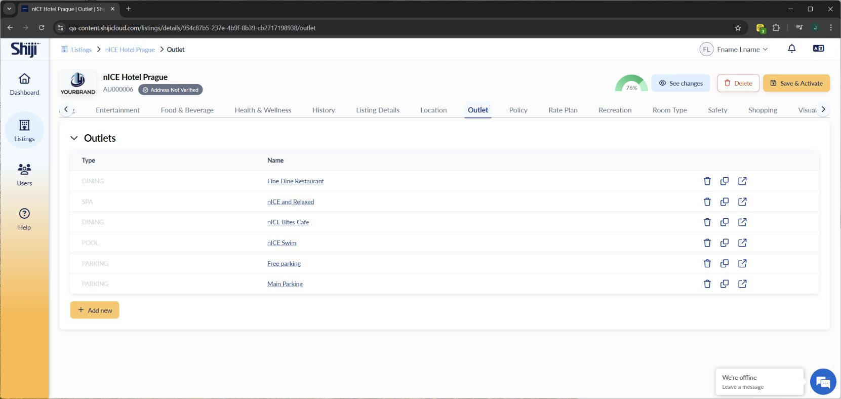 Listings ManagementRoom type manager