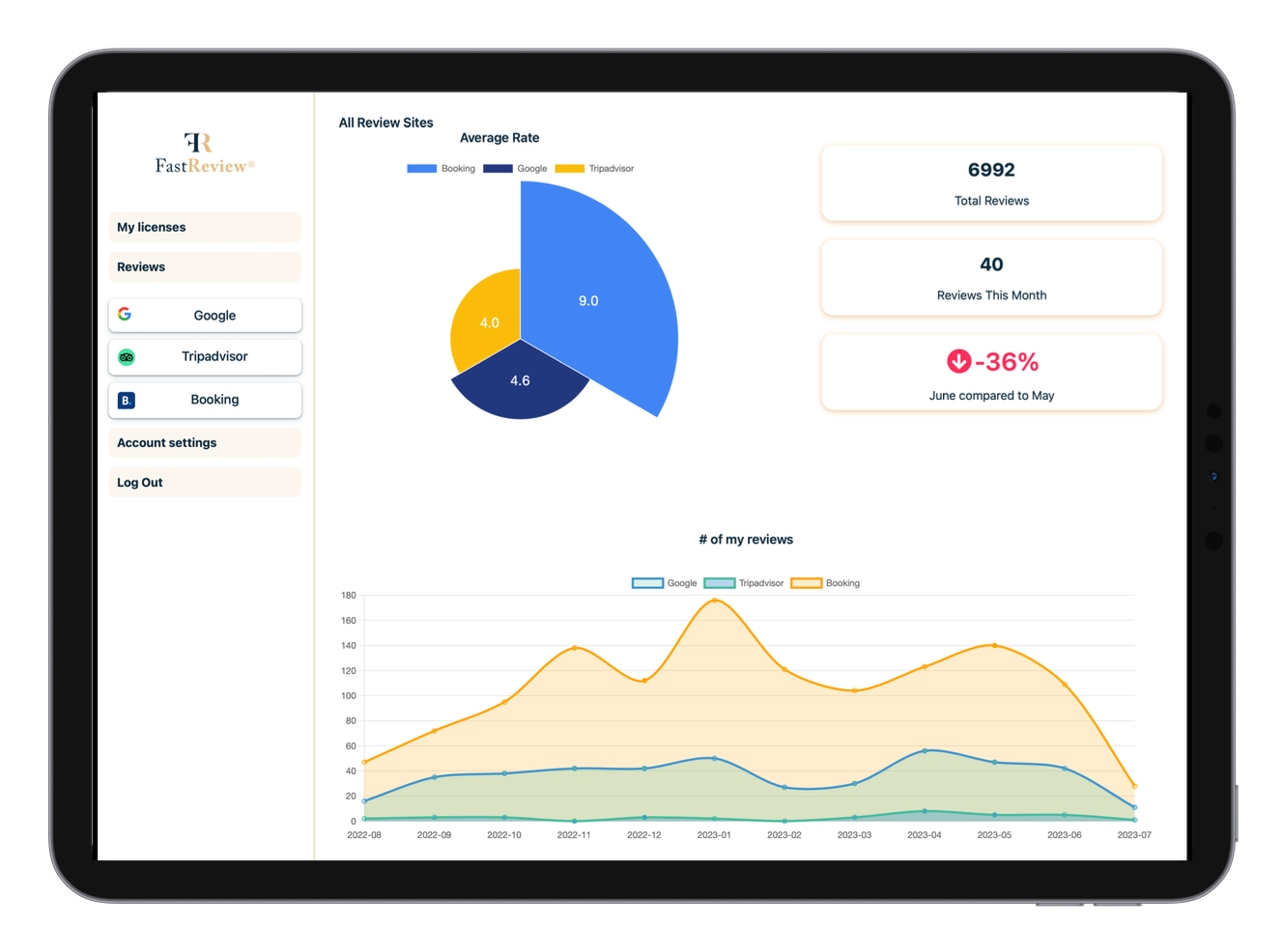 This description was generated by AI which analyzed the following sources to summarize a description of Fast Review products, features and capabilities. Leveraging user generated verified data sources allows us to generate a more helpful and realistic description for hoteliers free of sales promotion and hyperbole.
