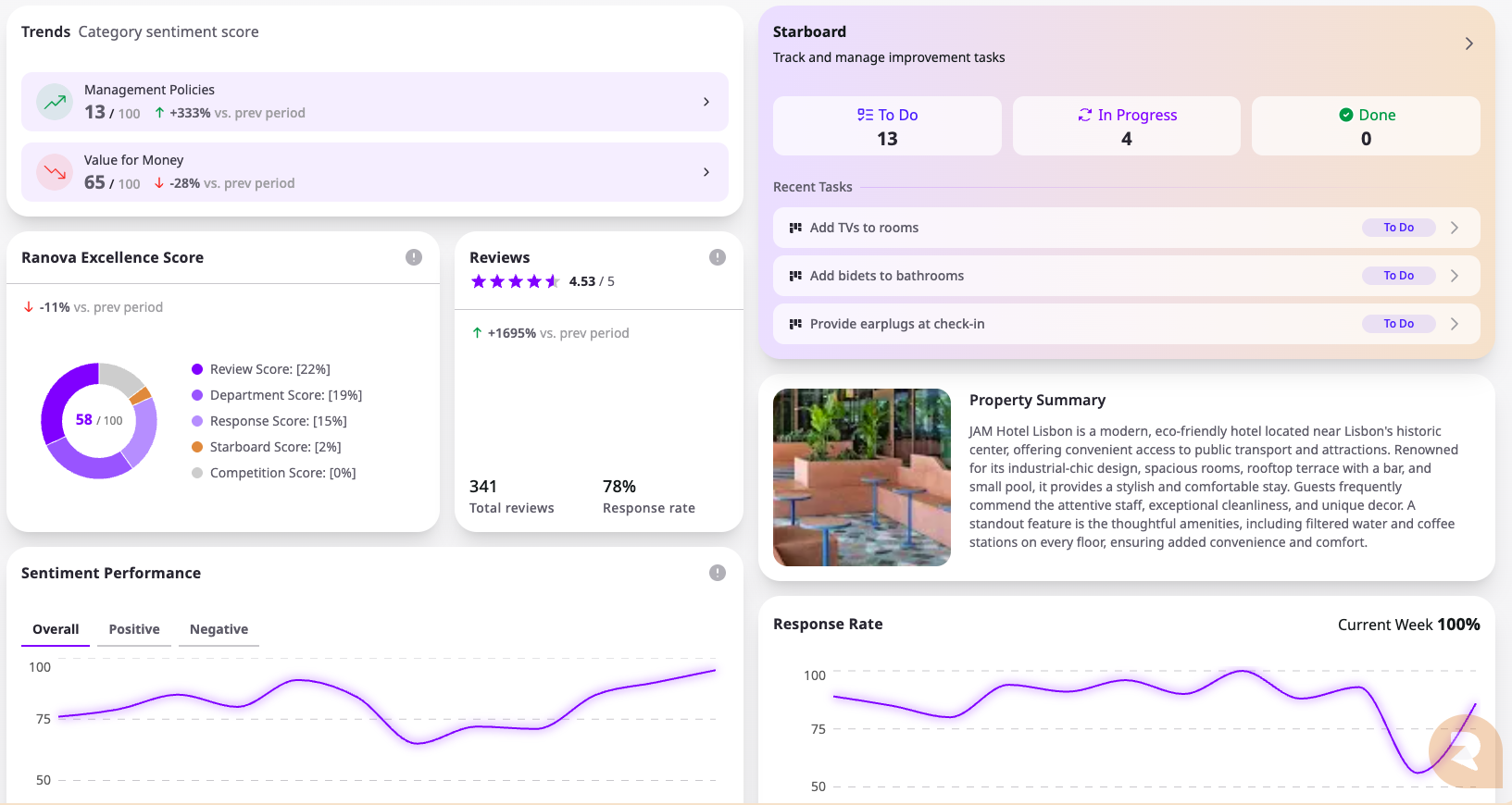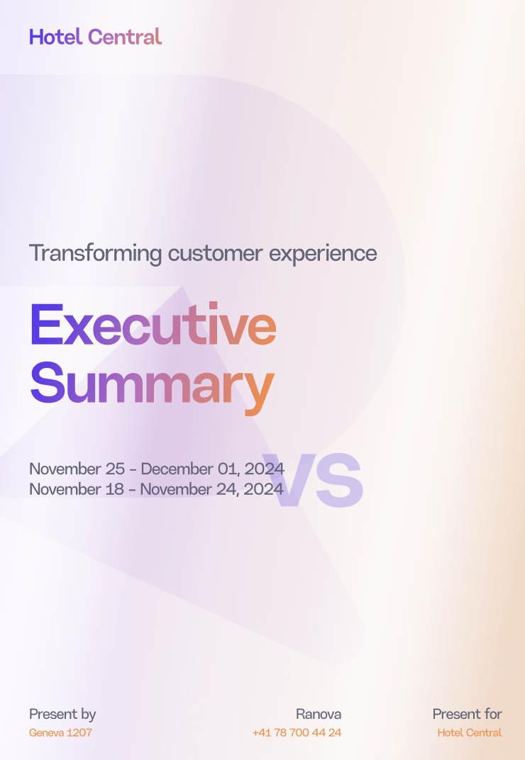 "Ranova is an AI-powered copilot designed specifically for independent hoteliers / groups, converting online reviews into actionable insights that directly improve your guest experience and reputation. Unlike standard reputation management tools, Ranova proactively identifies quick wins and strategic improvements, providing tailored recommendations and clear priorities to help you show your guest you care about their feedback and you implement it. By saving you valuable time on reputation management, Ranova empowers your team to focus more on creating exceptional experiences guests will love."