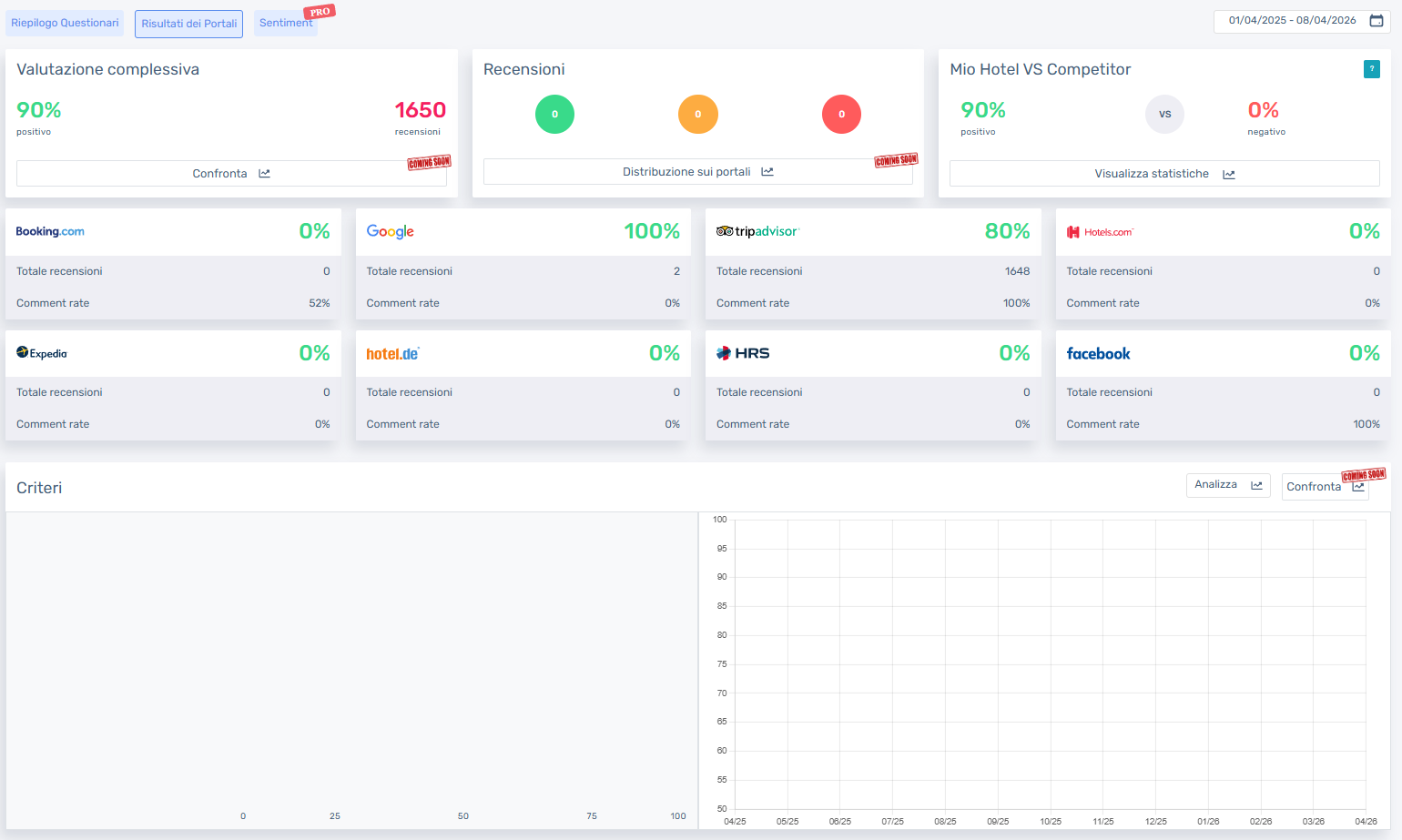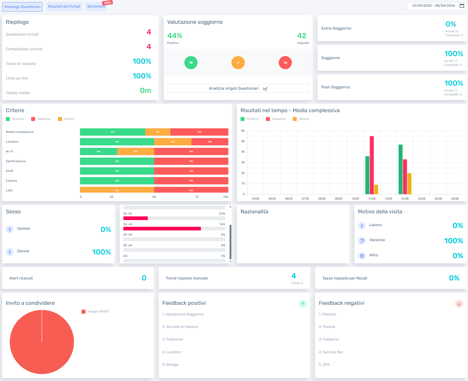 "Managing your online reputation has never been easier: with Weforguest’s Review module, you can monitor all guest comments from the main portals in a single dashboard. Receive real-time alerts to respond quickly and consistently—thanks also to AI-powered response suggestions. The system is integrated with the Survey module, allowing you to cross-check private and public feedback, act before a negative experience turns into a review, and strengthen your brand image"