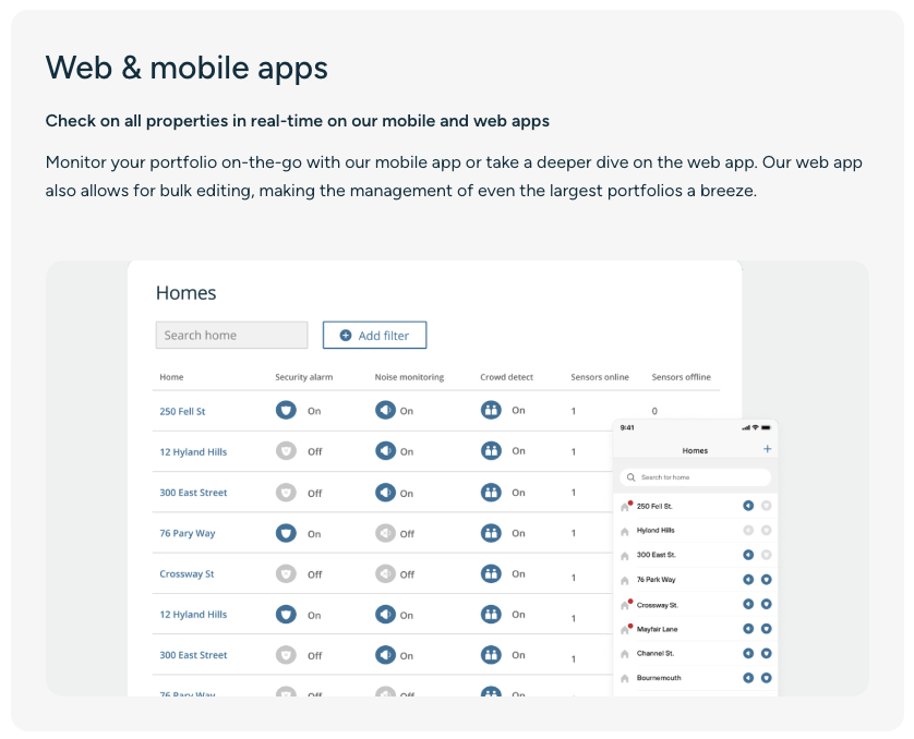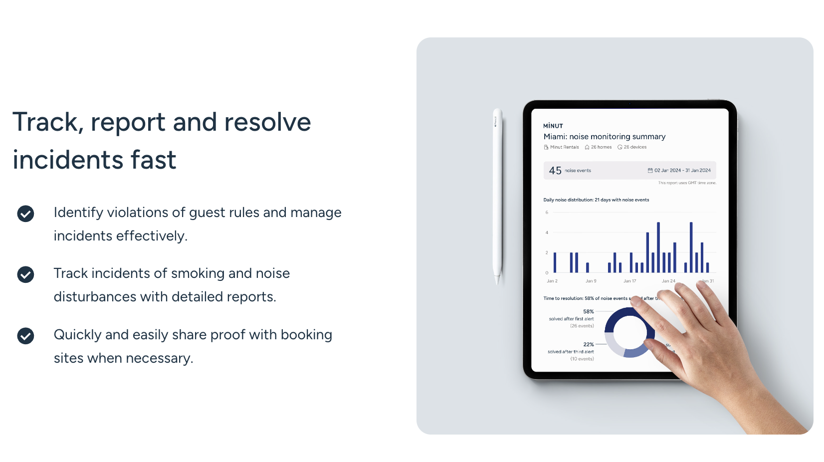 "Houd uw huis veilig en uw buren tevreden met respect voor de privacy van uw gasten. Alleen Minut geeft je het volledige inzicht dat je nodig hebt om je huizen te beschermen."