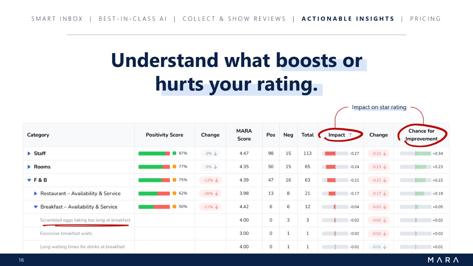 Tegenwoordig is actief reputatiemanagement een must voor elke serieuze hotelmanager. Actief reageren op uw beoordelingen en werken aan uw pijnpunten creëert een fundament voor toekomstig succes. MARA is eenvoudig in te stellen en de AI vermindert de tijd die u eraan besteedt fundamenteel. Probeer het gratis uit en gebruik alle functies zonder angst