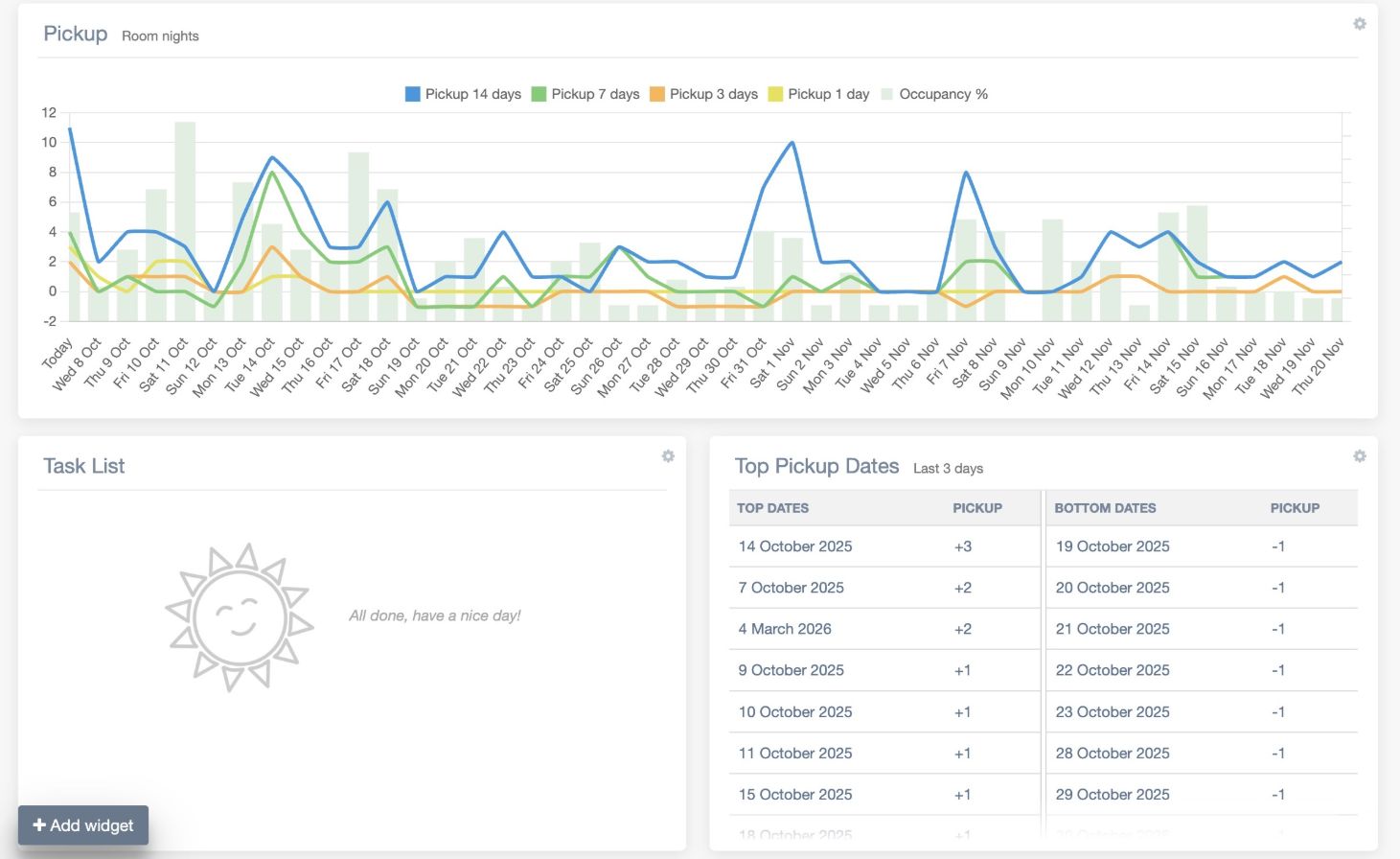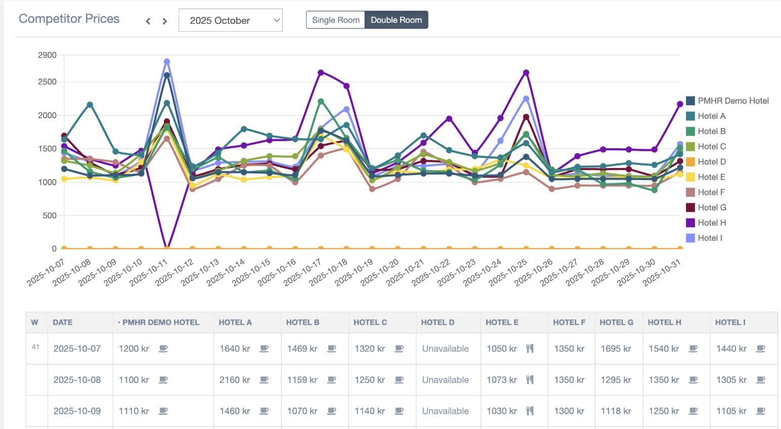 Inzicht in de vraag is een hoeksteen van revenue management en een essentieel onderdeel van Price My Hotel Room. Door data uit verschillende bronnen te analyseren, kunnen we de vraag betrouwbaar voorspellen en effectieve prijsstrategieën creëren. We integreren met hotel PMS-systemen om boekingspatronen, trends en prijzen van concurrenten te analyseren, waardoor hotels hun strategieën kunnen aanpassen om concurrerend te blijven.