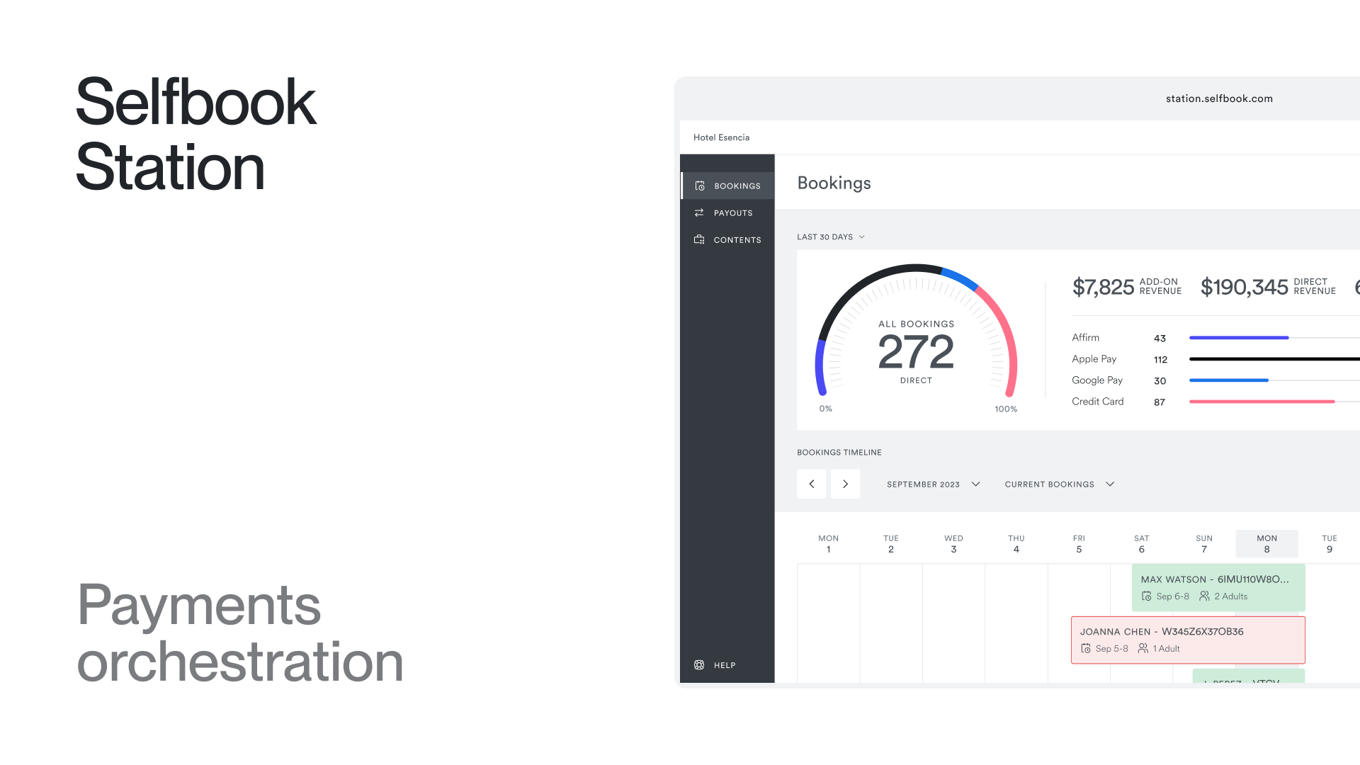 "Working in harmony with Selfbook Direct, Selfbook Station is a comprehensive booking and payment orchestration platform designed to automate payments and streamline bookings management for hotels. Station was crafted to simplify the labor-intensive systems used in the hospitality industry, enabling hoteliers to save time while gaining more control over their revenue."