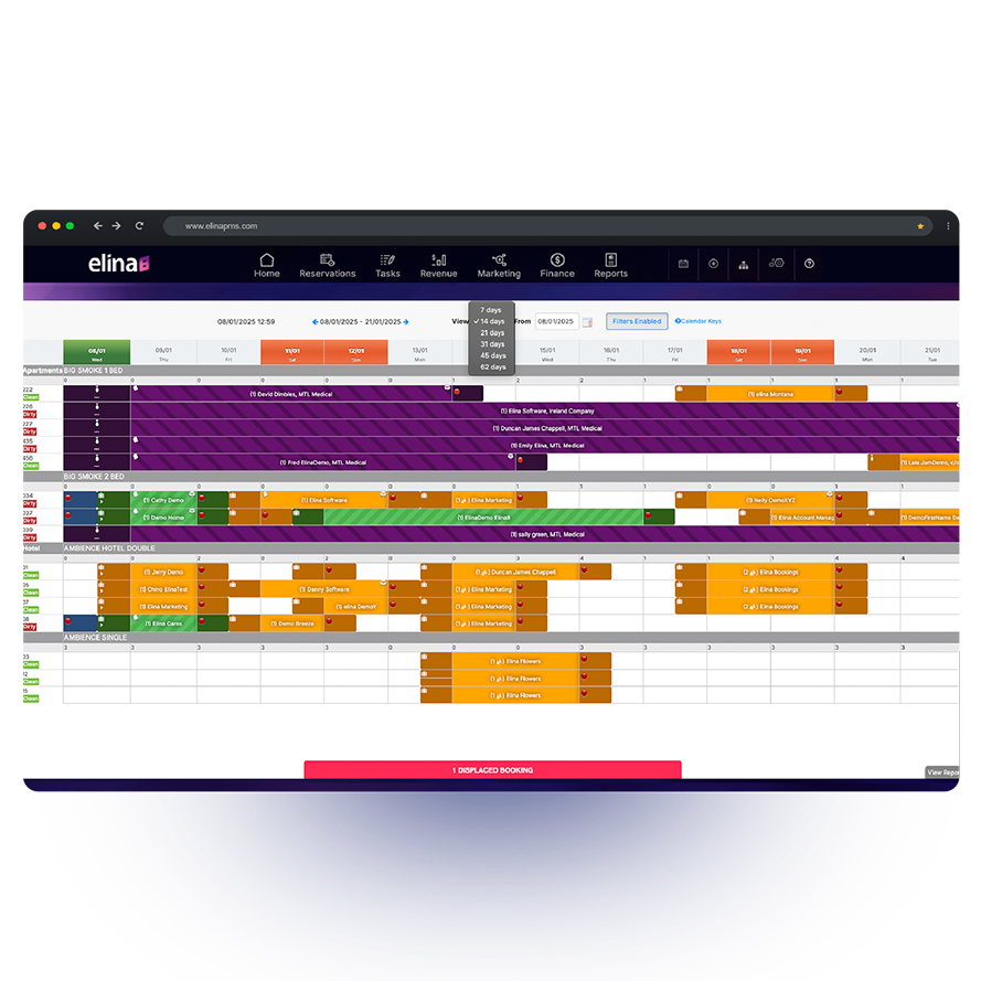 Elina PMS stands out from its competitors through a combination of time-saving automation for various tasks like booking and invoicing, the ability to blend business with leisure bookings, and real-time data for informed decision-making. It also boasts over 50 integrations, offering a highly connected system, and a user-friendly interface that simplifies day-to-day operations. Additionally, its focus on enhancing guest relationships, cloud-based accessibility with high uptime, and robust data management and security further differentiate it in the property management software market.
