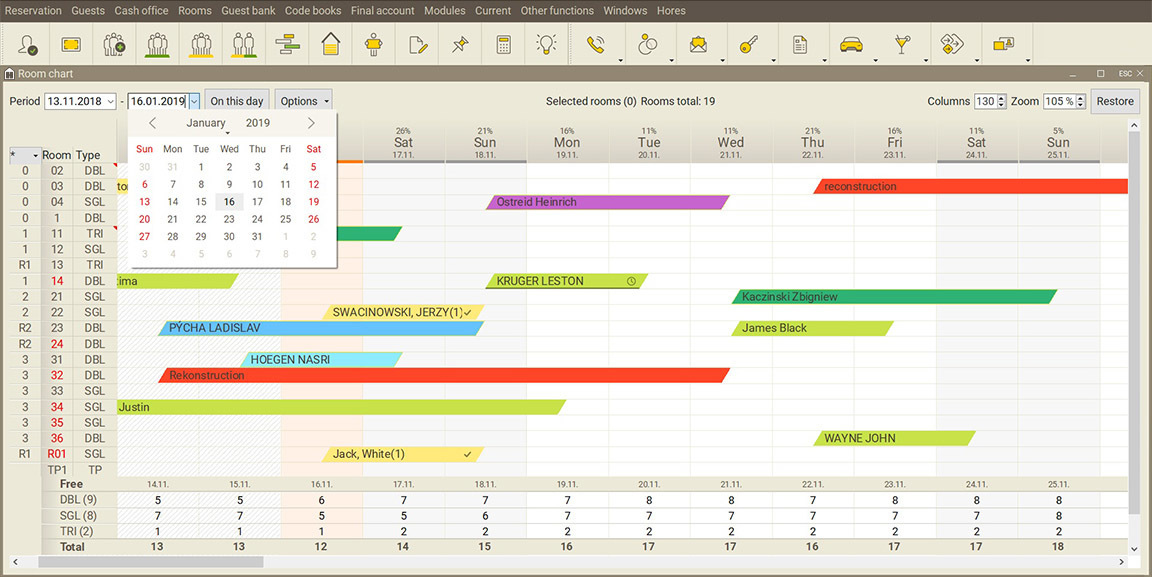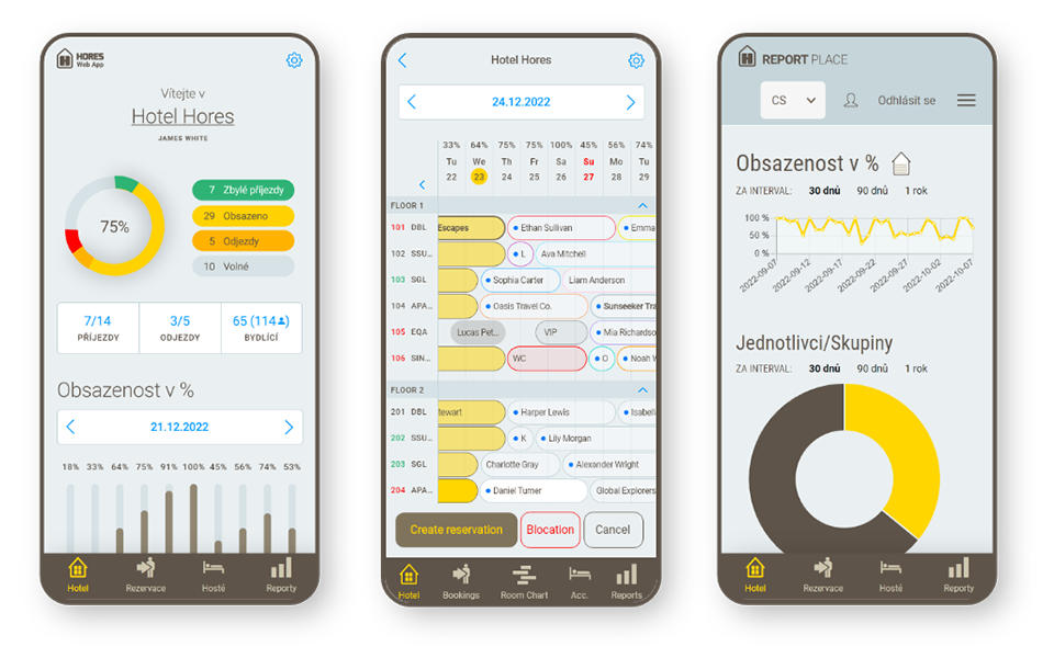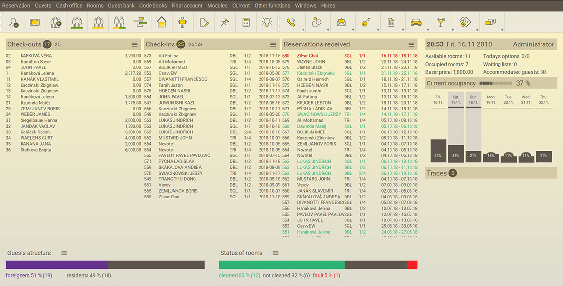Intelligent HUB of your hotel. It manages your reception desk, takes care of your bookings and gives you a detailed overview of the hotel's status.