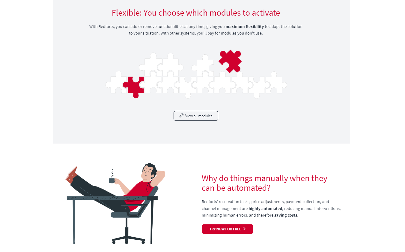 "A complete and high-quality solution for hotels, hostels, apartments, or any other type of property at a very competitive price. Redforts offers you a whole suite of functionalities: PMS, Channel manager, Booking engine, Revenue management, Yield management, Rate shopper, Online check-in, Online payment, PoS integration and much more. Stop wasting time, and use an online automated system that reduces manual interventions, minimizes human errors, and saves money."