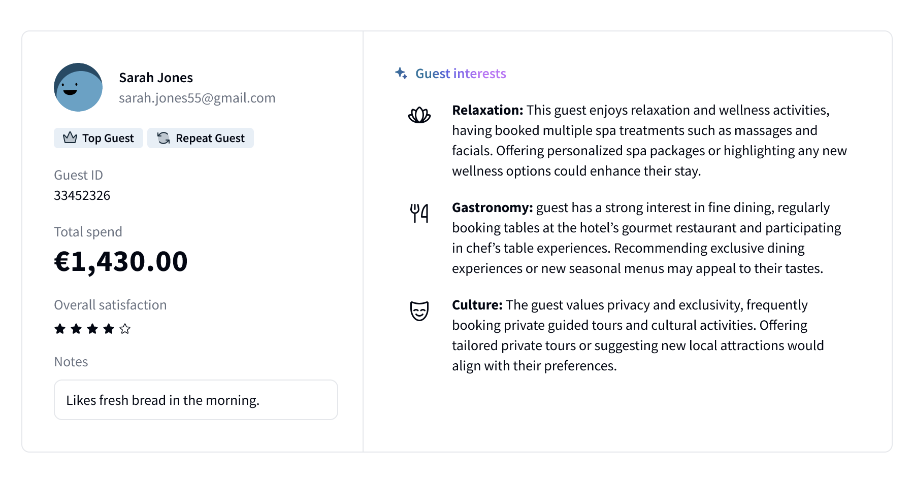Transforme os dados dos hóspedes em ações concretas com ofertas personalizadas, comunicação direcionada e fluxos de trabalho automatizados.