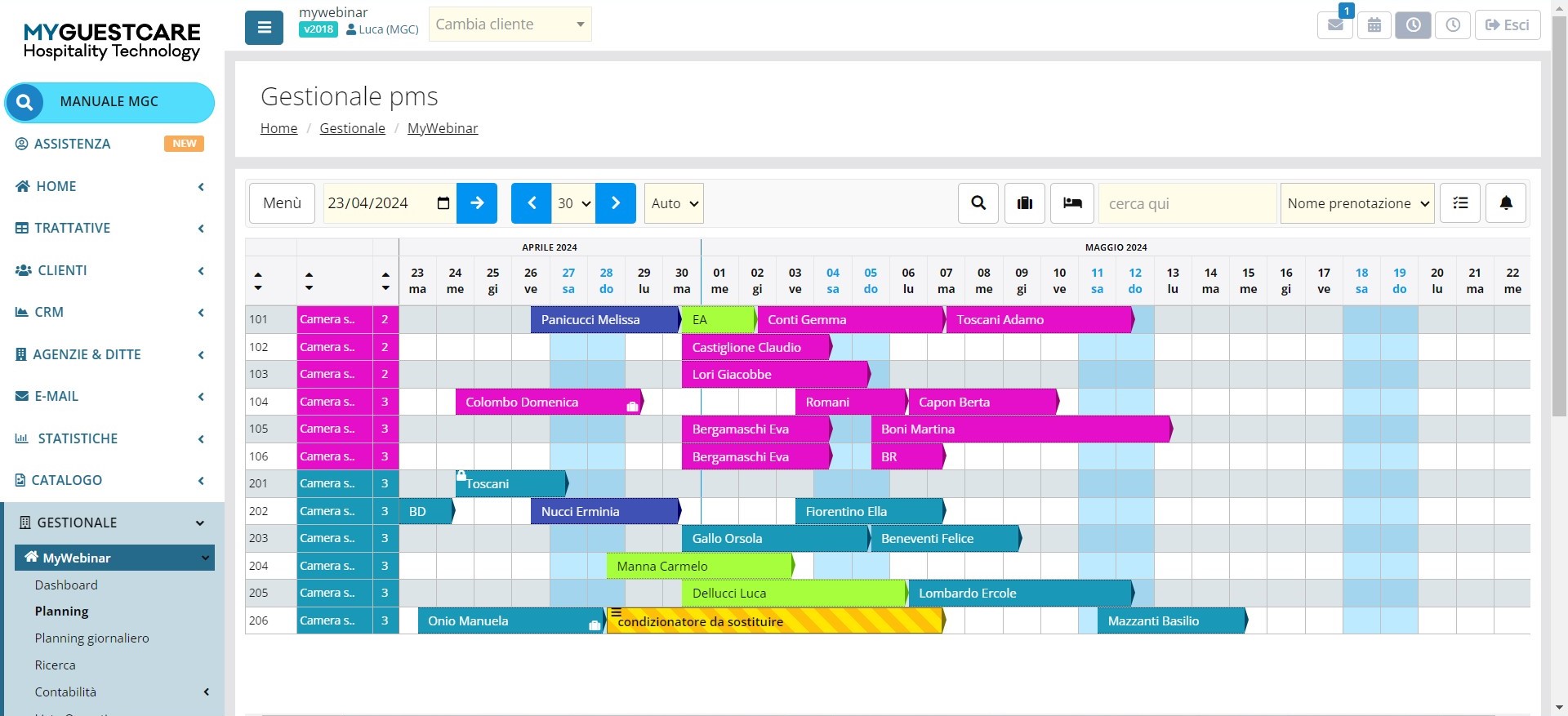 "Myguestcare è un software alberghiero in cloud che aumenta i ricavi e migliora la gestione degli hotel semplificando il lavoro di tutti i giorni grazie alla perfetta intergrazione delle funzioni di vendita, distribuzione e gestione degli ospiti. Myguestcare One è il gestionale tutto in uno che include in un unico software il Booking Engine per acquisire le prenotazioni dirette dal sito della struttura, il CRM per inviare preventivi accattivanti e ad alto tasso di conversione, il Channel Manager per sincronizzare al meglio disponibilità e tariffa con il mondo delle OTA (online travel Agencies) e il PMS per la gestione completa dell'ospite in casa."
