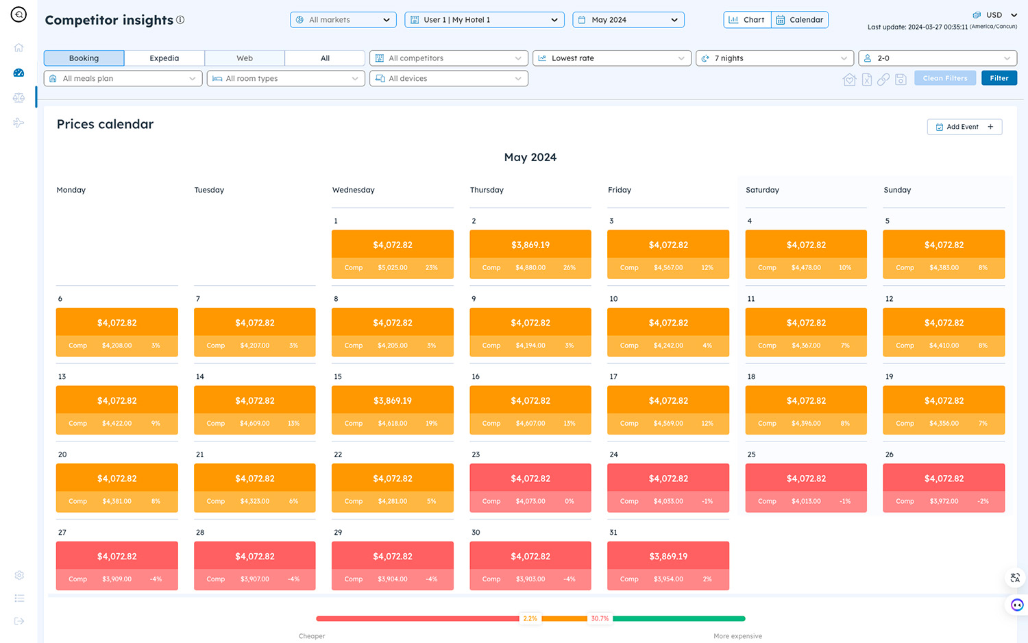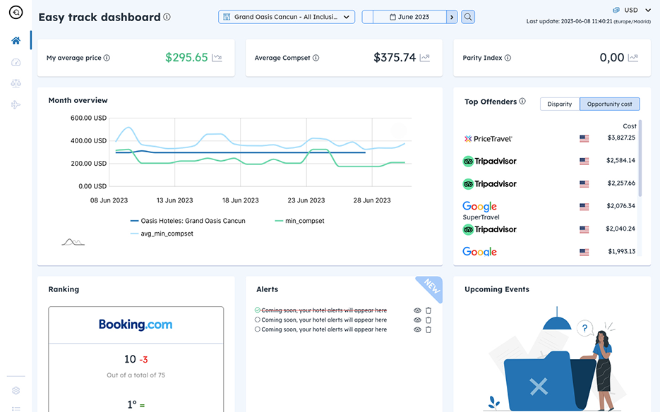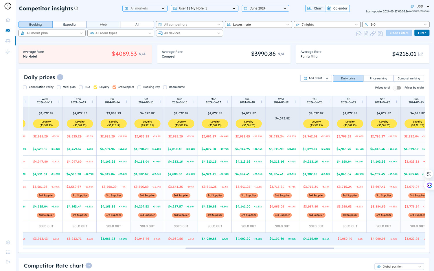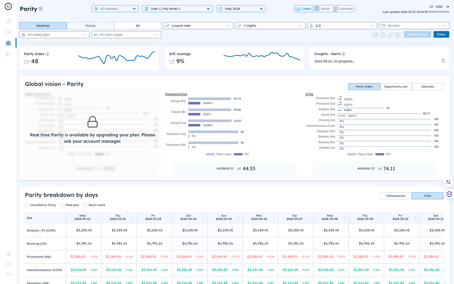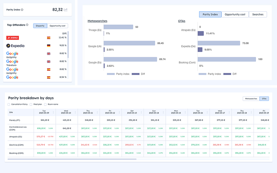 Customization and advanced tools to boost conversion rates. Focuses on optimizing the user experience with dynamic pricing and personalized offers. Price seeker provides real-time, granular insights into competitor pricing, OTA parity, and market trends, enabling dynamic and competitive pricing decisions.