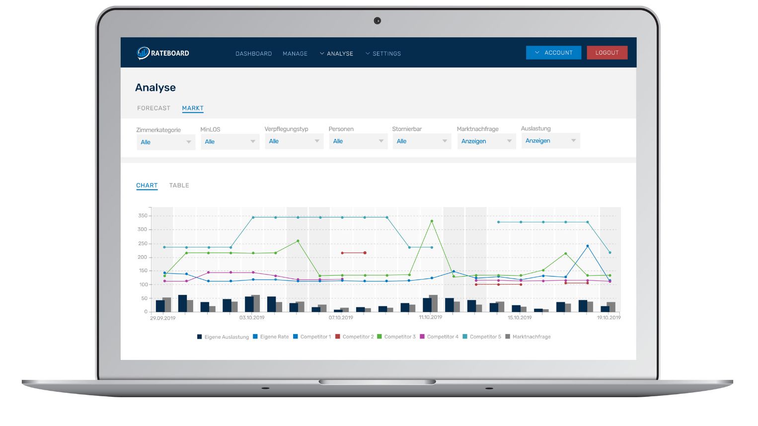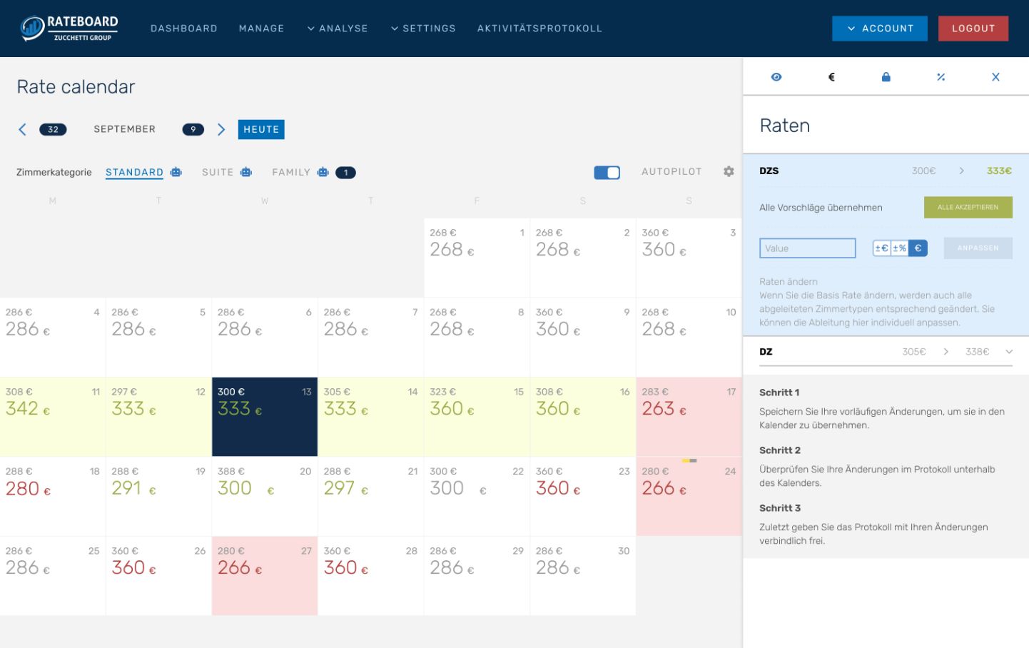Rateboard is a distinctly user-friendly system for implementing an efficient pricing strategy for hoteliers. Due to the numerous interfaces to all common PMS systems, it can be implemented quickly, the application is intuitive and simple.