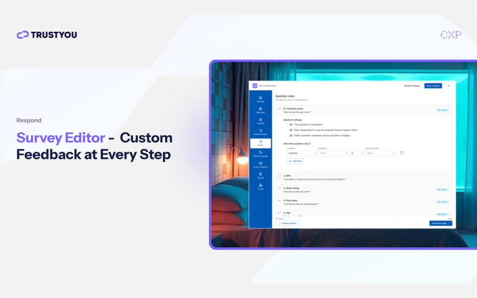将在线评论和直接调查整合到一个智能收件箱,统一您的宾客反馈工作流程。回复速度更快,优先级更高,绝不会错过任何评论——无论是来自 Google、Booking.com 还是您自有品牌的调查。借助 TrustYou 的 CXP 收件箱,您的整个宾客体验清晰可见、可操作且井然有序。