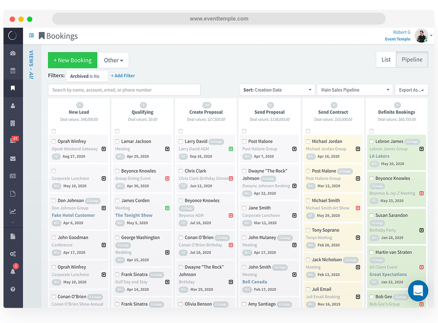 EventTemple 擅长简化酒店的活动和团体销售管理。其活动管理软件提供了一个直观的平台,用于组织活动、跟踪细节和管理时间表;而酒店销售软件则简化了线索处理和方案生成流程。该系统集中沟通并自动执行重复性任务,帮助销售团队更快地达成交易,并为客户提供无缝体验。其简洁的界面和强大的报告工具使监控绩效和优化收入变得轻而易举。