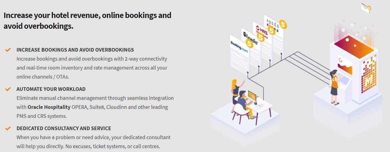 世界上最强大的渠道经理,实时管理 450 多个酒店预订渠道的客房和价格。